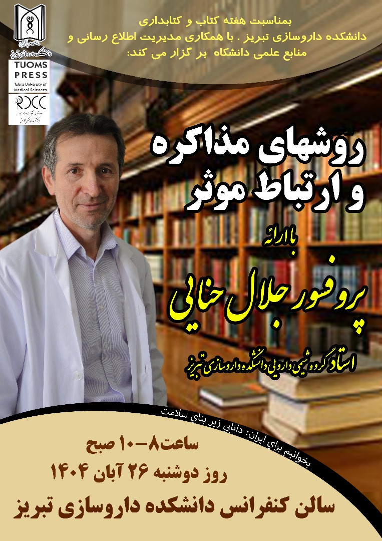 به گزارش روابط عمومی معاونت تحقیقات و فناوری، همزمان با گرامیداشت هفته کتاب و کتابخوانی، و در راستای همنوایی با سیاستهای مرکز توسعه و هماهنگی اطلاعات و انتشارات علمی وزارت بهداشت، درمان و آموزش پزشکی، مدیریت اطلاعرسانی پزشکی و منابع علمی و کتابخانه مرکزی دانشگاه علوم پزشکی تبریز مجموعهای از برنامههای فرهنگی، آموزشی و تخصصی را از روز یکشنبه 25 الی روز چهارشنبه 28 آبانماه 1404 برگزار می کند