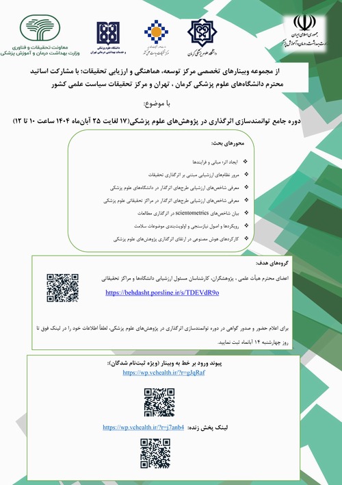 گروههای هدف:اعضای محترم هیئت علمی، پژوهشگران، و کارشناسان مسئول ارزشیابی در دانشگاهها و مراکز تحقیقاتی علوم پزشکی