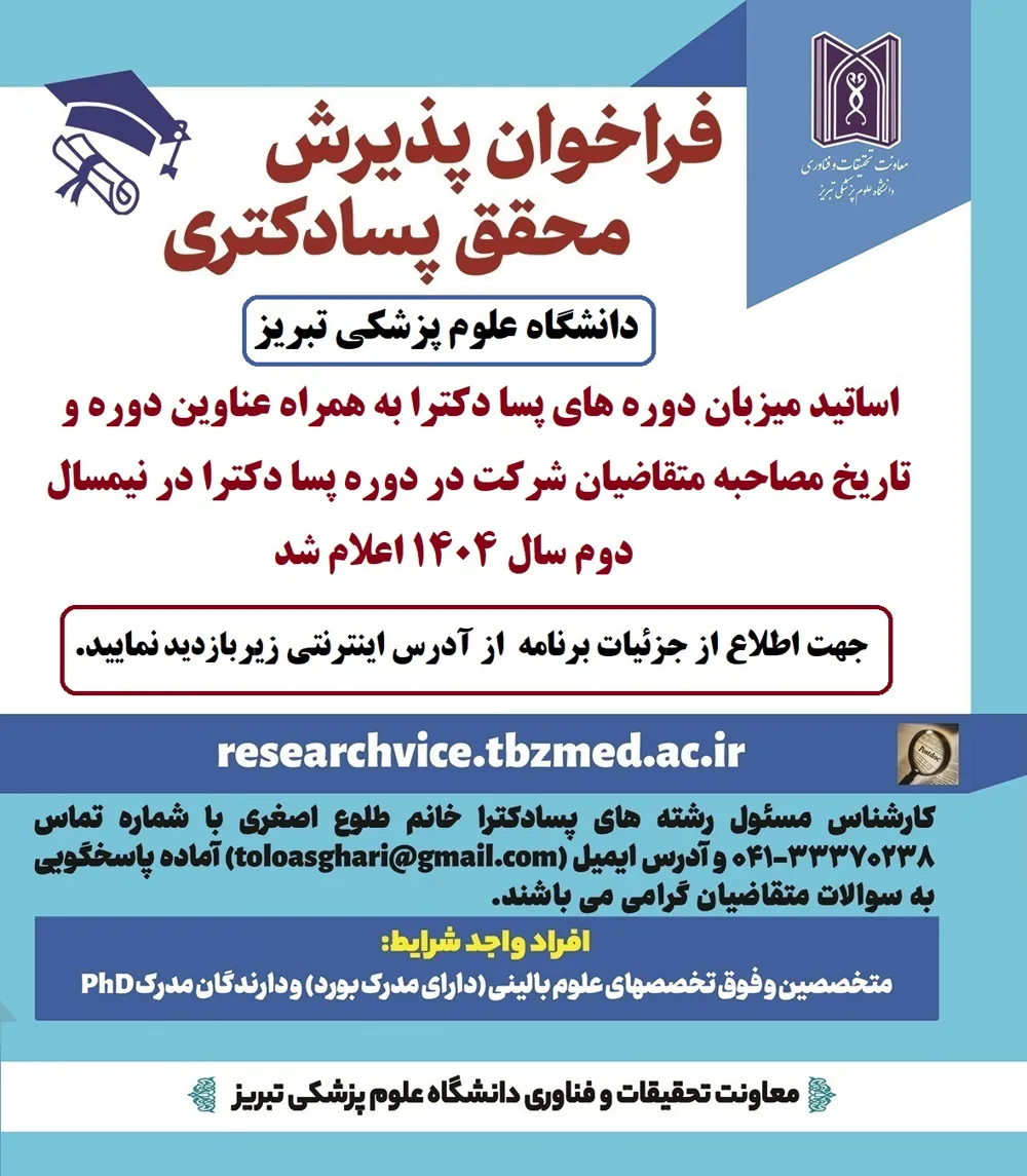 فراخوان پذیرش محقق پسادکتری دانشگاه علوم پزشکی تبریز
