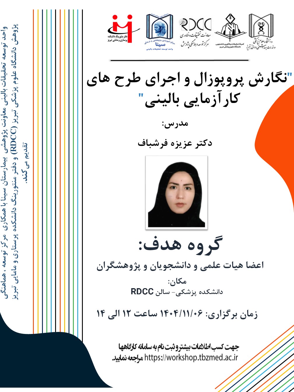 معاونت آموزشی و پژوهشی و واحد توسعه تحقیقات بالینی بیمارستان سینا برگزار می نماید: