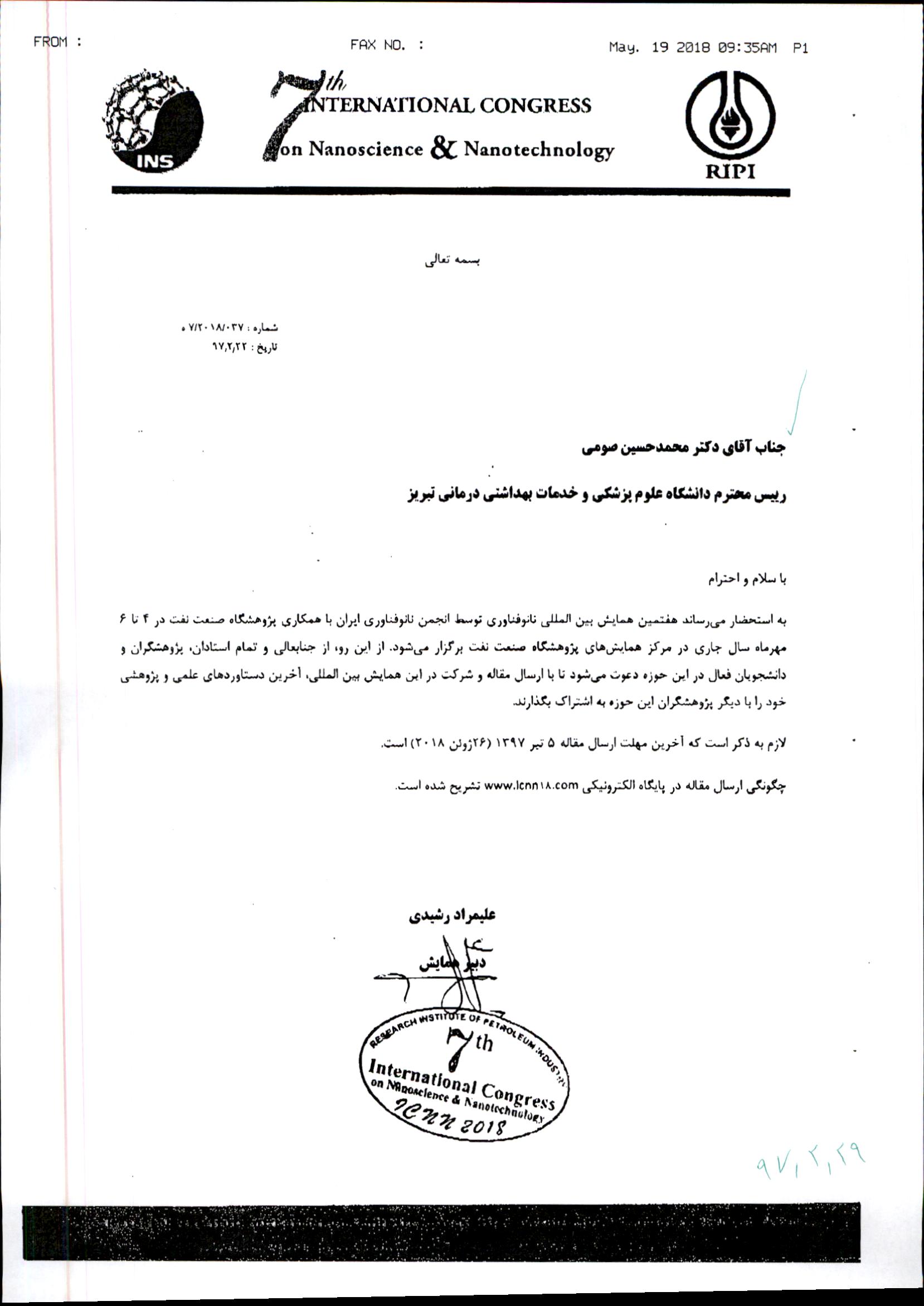 برگزاری هفتمین همایش بین المللی علوم و فناوری نانو- ICNN2018