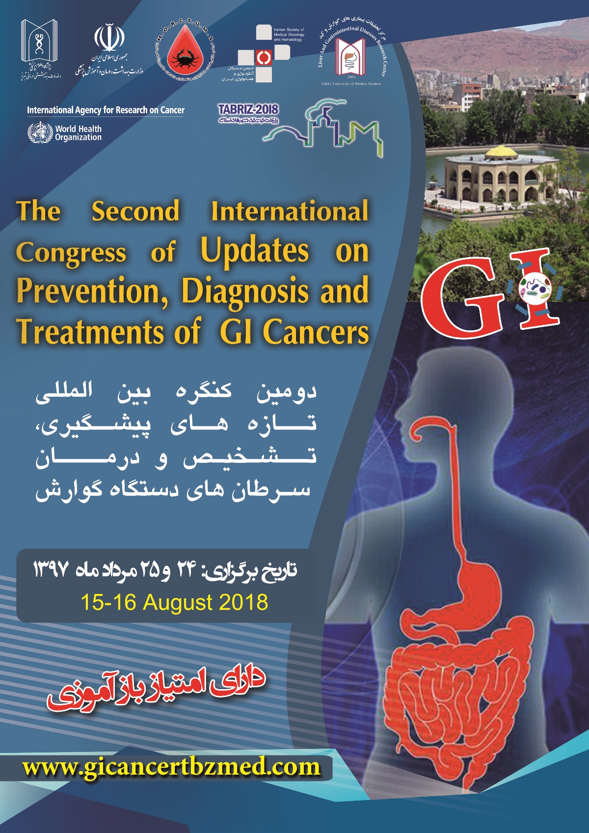 " دومین کنگره بین المللی تازه های پیشگیری، تشخیص و درمان سرطان های دستگاه گوارش" توسط مرکز تحقیقات هماتولوژی و انکولوژی دانشگاه علوم پزشکی تبریز در تاریخ های 24 و 25 مرداد ماه سال 97، برگزار خواهد شد.
