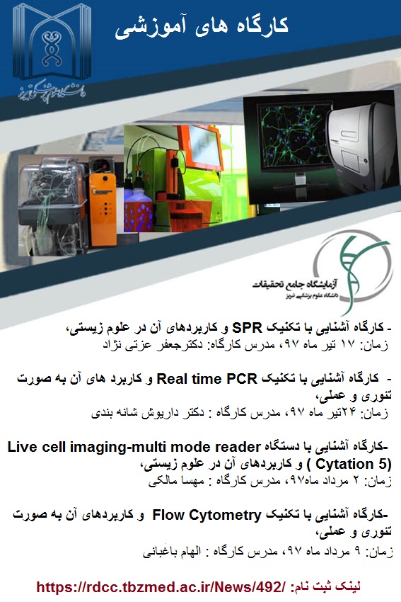 مکان برگزاری : آزمایشگاه جامع تحقیقات جنب بیمارستان شهید قاضی طباطبایی زمان برگزاری: 10 الی 15