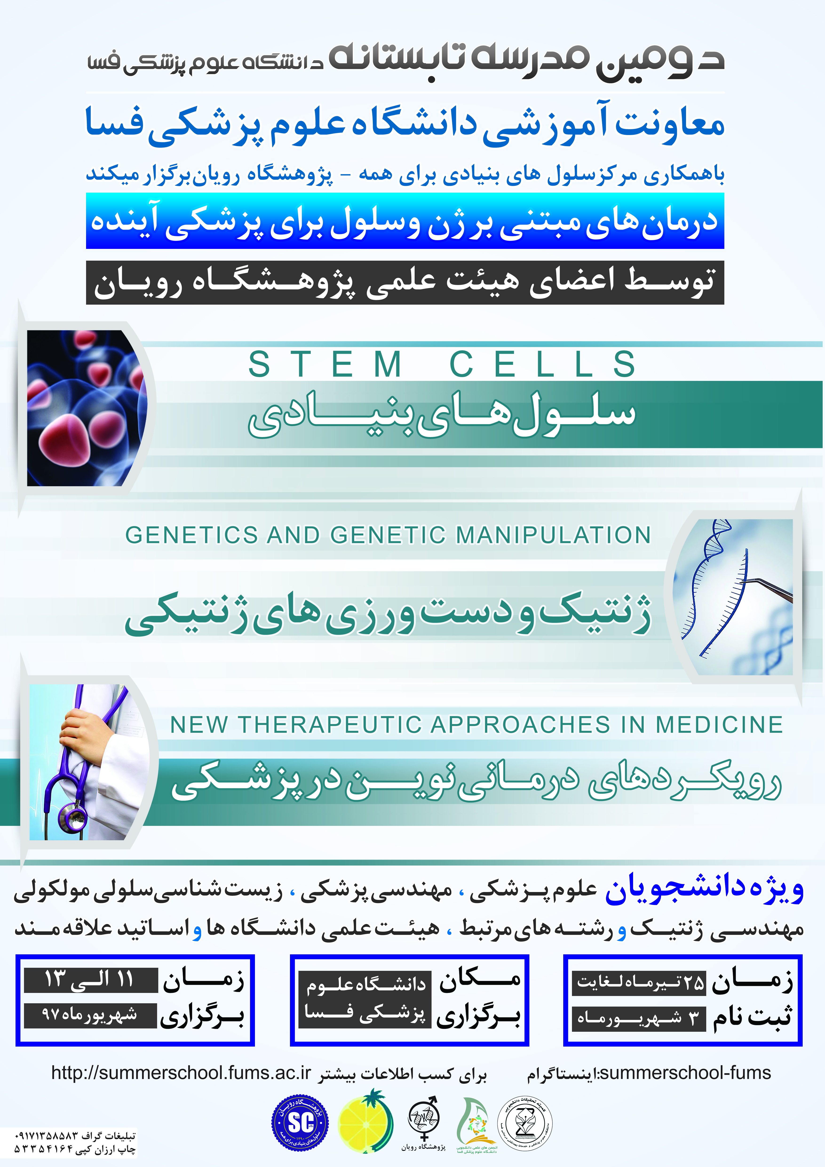 دانشگاه علوم پزشكي فسا قصد دارد كه با همكاري پژوهشگاه رويان مدرسه تابستانه برگزار نماید.