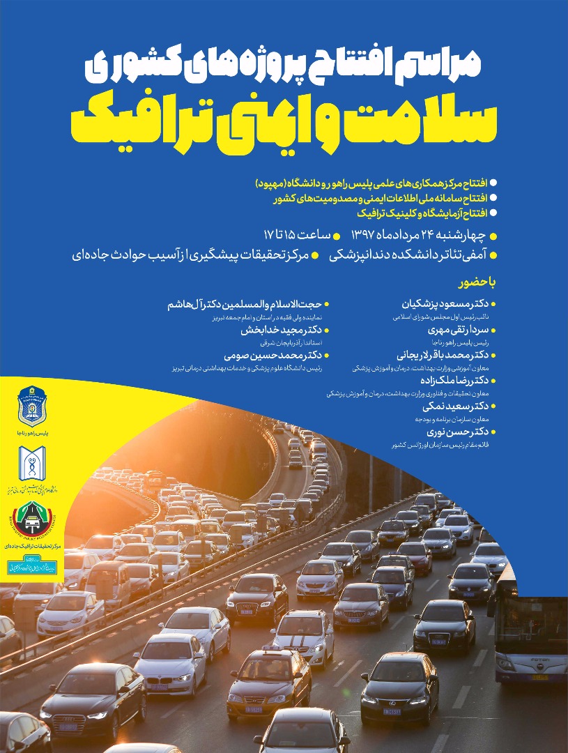 پوستر و برنامه مراسم افتتاحیه پروژه های کشوری مشترک دانشگاه علوم پزشکی تبریز و پلیس راهور ناجا باحضور 10نفر از مقامات کشوری و استانی