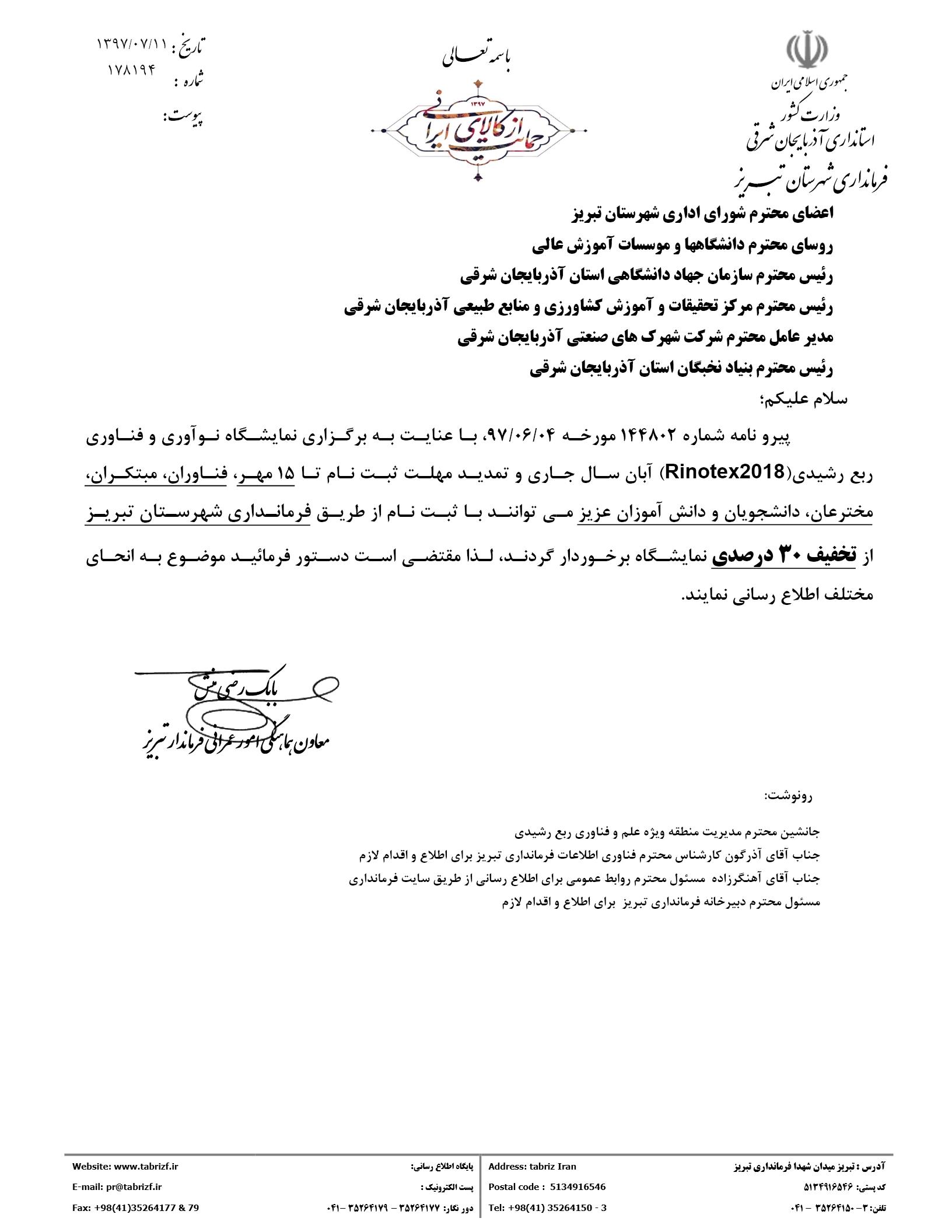 تمدید مهلت ثبت نام نمایشگاه نوآوری و فناوری ربع رشیدی