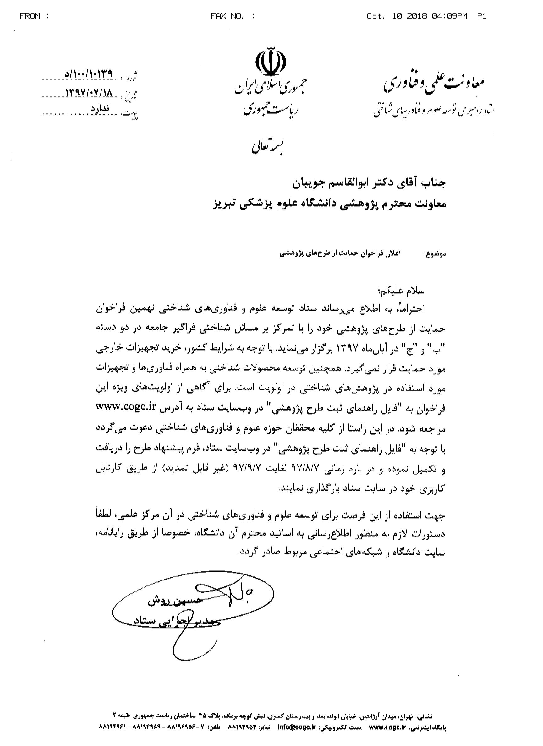 از سوی ستاد توسعه علوم و فناوریهای شناختی معاونت علمیوفناوری ریاستجمهوری نهمین دوره فراخوان حمایت از طرحهای پژوهشی در 10 حوزه اولویتدار اعلام شد.