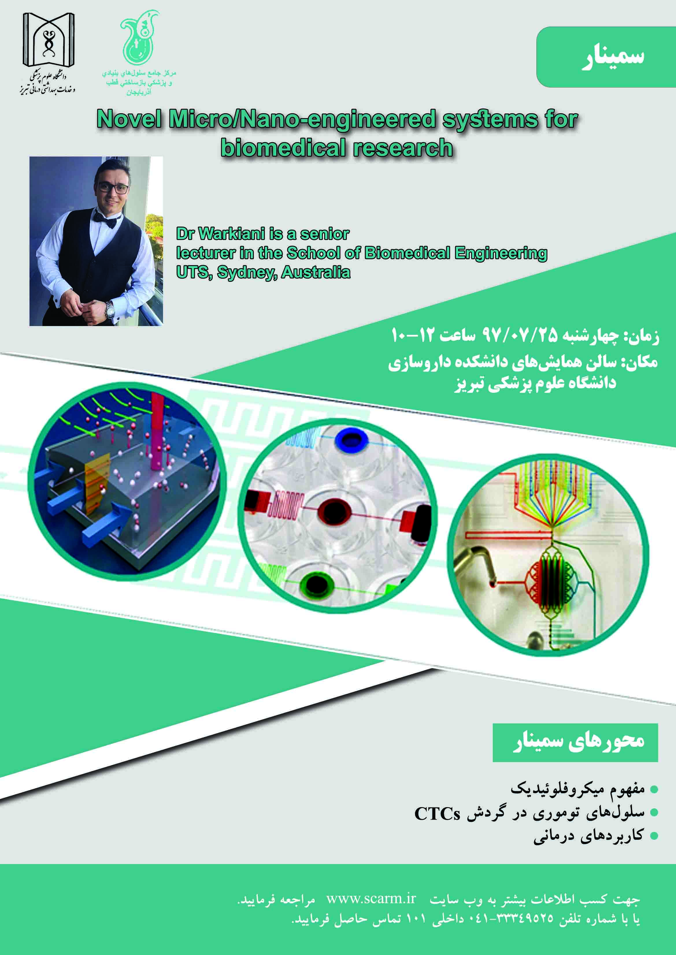 دعوت به شرکت در سمینار فناوری همگرای میکروفلوئیدیک با دعوت از دکتر ورکیانی از دانشگاه UTS سیدنی (استرالیا)