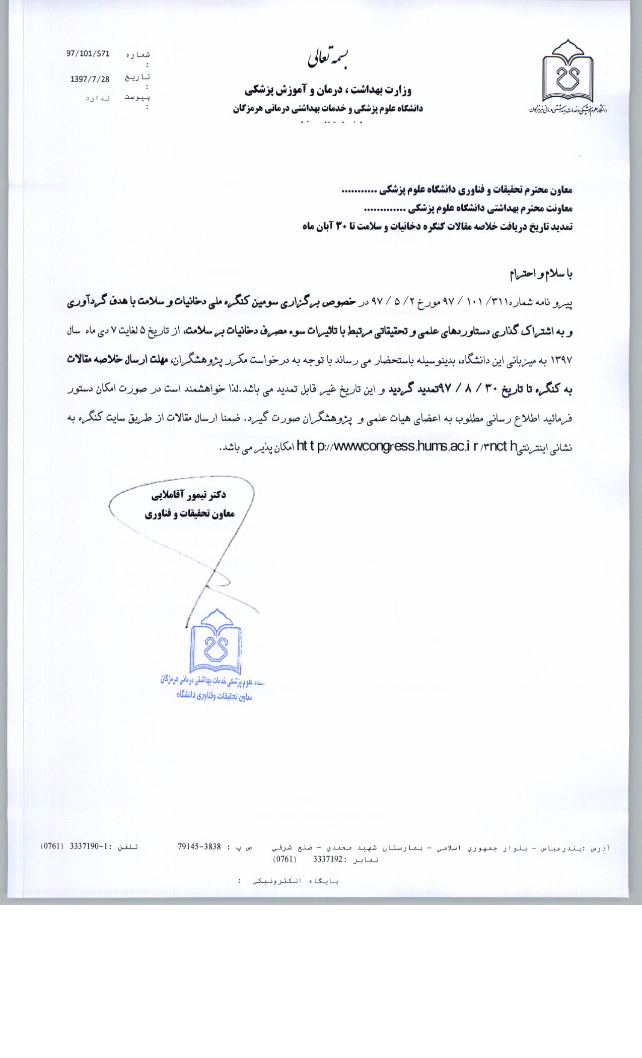 تمدید مهلت ارسال خلاصه مقالات سومین کنگره ملی دخانیات و سلامت تا 97/8/30 - نامه ی معاون محترم تحقیقات و فناوری دانشگاه علوم پزشکی هرمزگان کد خبر : 35704 کپی کلمات کلیدی : خلاصه مقالات سومین کنگره ملی دخانیات و سلامت