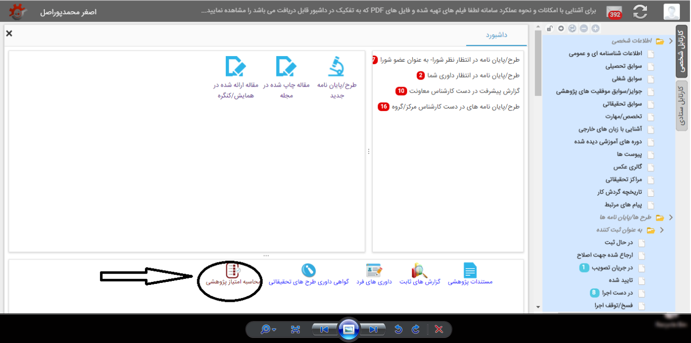 مجددا" یادآوری می شود در سیستم پژوهان در انتهای صفحه اول پروفایل هر پژوهشگر قسمتی با نام "محاسبه امتیاز پژوهشی" اضافه شده است (لطفا پیوست 3 را مشاهده نمایید) که با روش بالا امتیاز پژوهشی هر فرد را برای سال های مختلف شمسی و میلادی محاسبه می کند و طبق مصوبات این معاونت انتخاب پژوهشگران برتر برای جشنواره پژوهشی دانشگاه از این طریق خواهد بود.