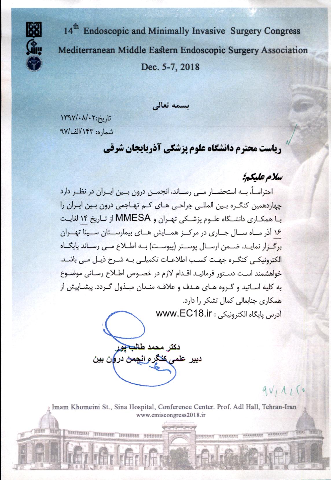 برگزاری چهاردهمین کنگره بین المللی جراحی های کم تهاجمی درون بین ایران