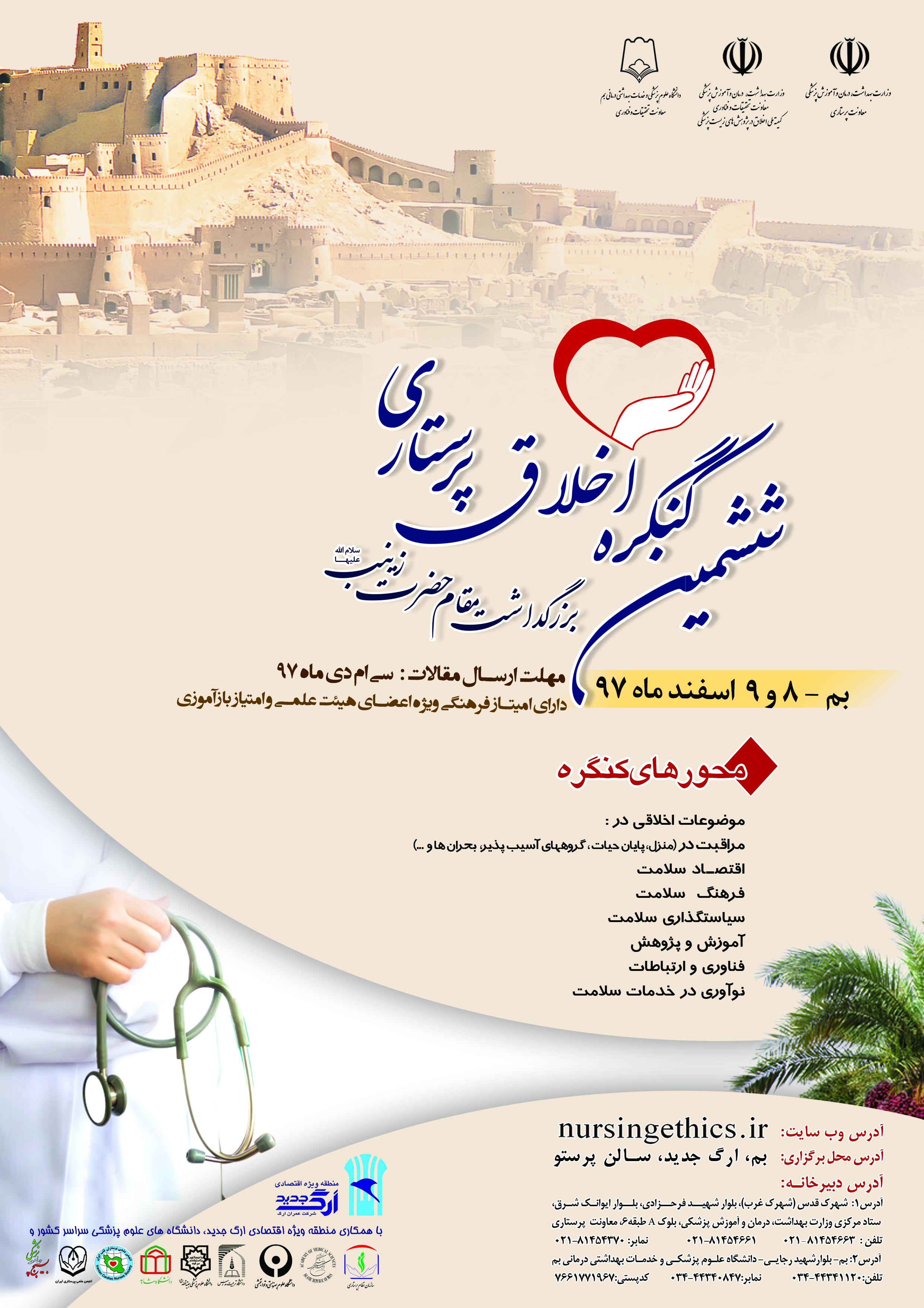 ششمین کنگره ملی اخلاق پرستاری به میزبانی دانشگاه علوم پزشکی بم در روزهای چهارشنبه و پنجشنبه مورخ 8 و 9 اسفندماه 1397 برگزار میگردد.