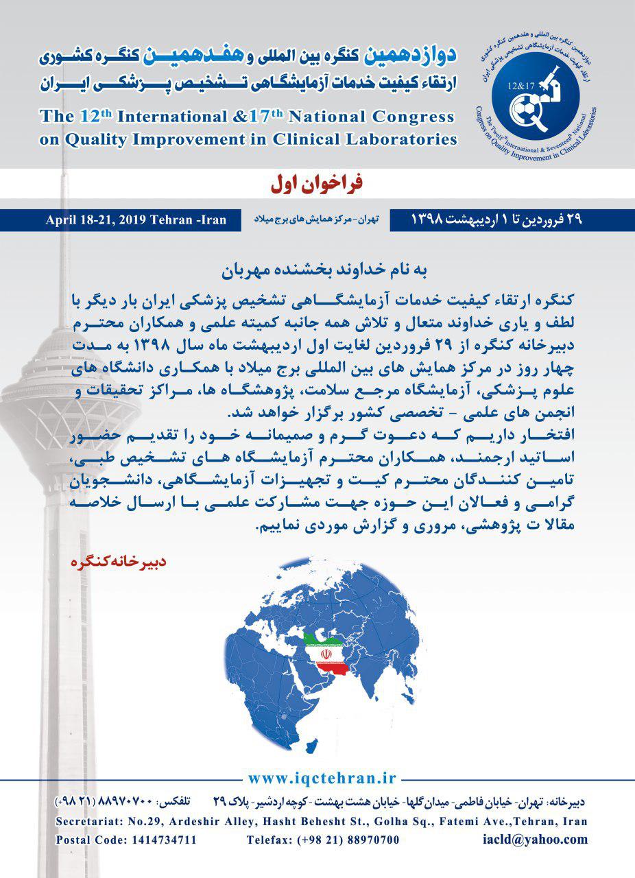 فراخوان اول دوازدهمین کنگره بین المللی و هفدهمین کنگره کشوری ارتقاء کیفیت خدمات آزمایشگاهی تشخیص پزشکی ایران