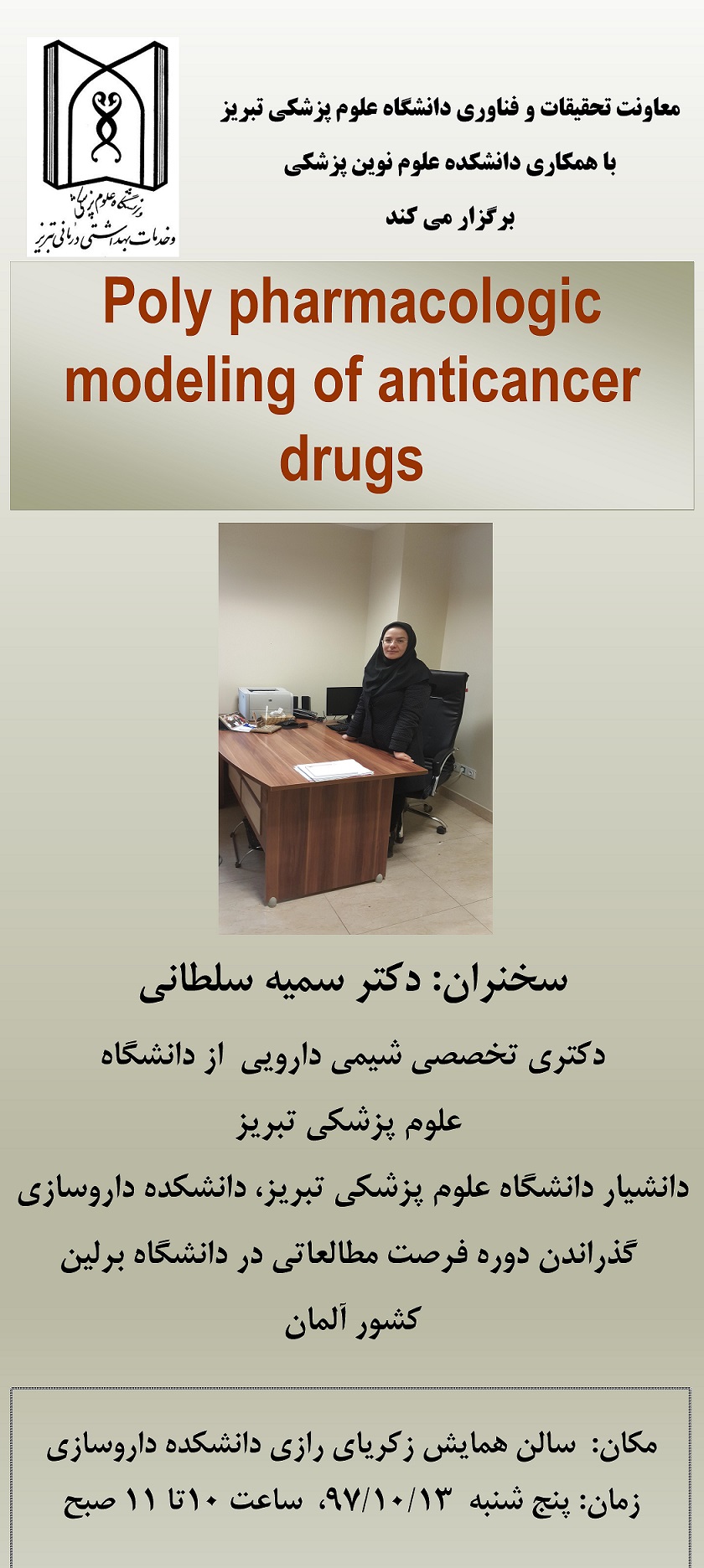 سخنرانی خانم دکتر سمیه سلطانی با موضوع: "Poly Pharmacologic modeling of anticancer drugs"
