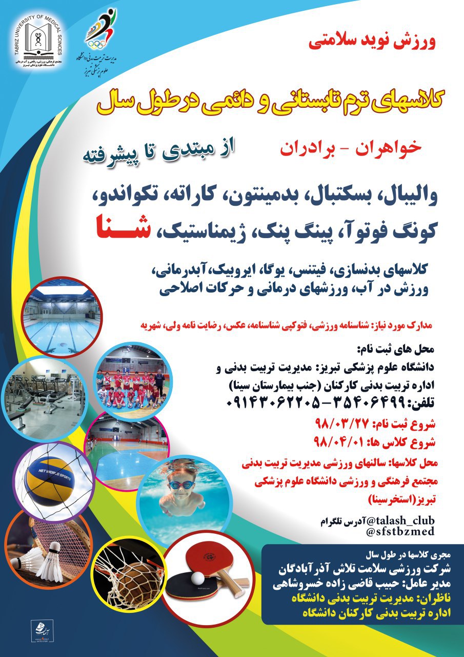 برگزاری کلاسهای ورزشی ترم تابستانی برای فرزندان محترم اساتید و کارکنان دانشگاه - کد خبر : 35865 کپی کلمات کلیدی : ترم تابستانی کارکنان دانشگاه فرزندان محترم اساتید کلاسهای ورزشی