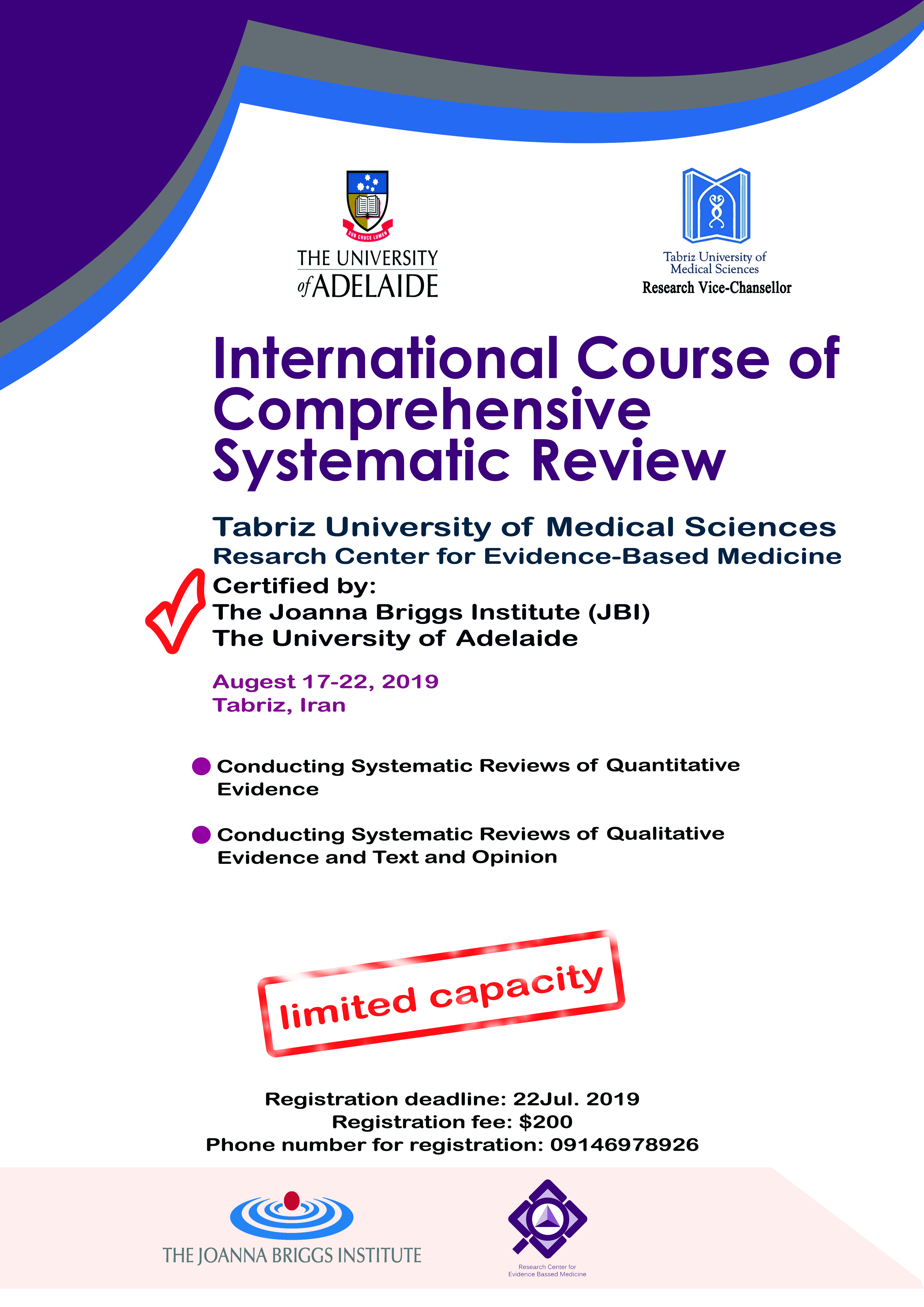 مرکز تحقیقات پزشکی مبتنی بر شواهد با همکاری مؤسسه Joanna Briggs Institute (JBI) دانشگاه آدلاید استرالیا برگزار می کند: