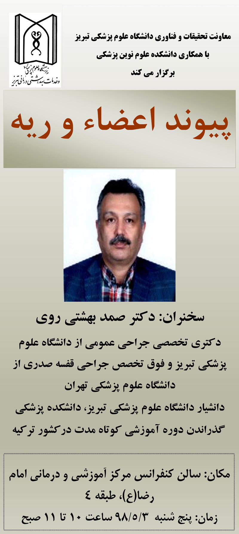 سخنرانی آقای دکتر صمد بهشتی روی با موضوع : پیوند اعضاء و ریه
