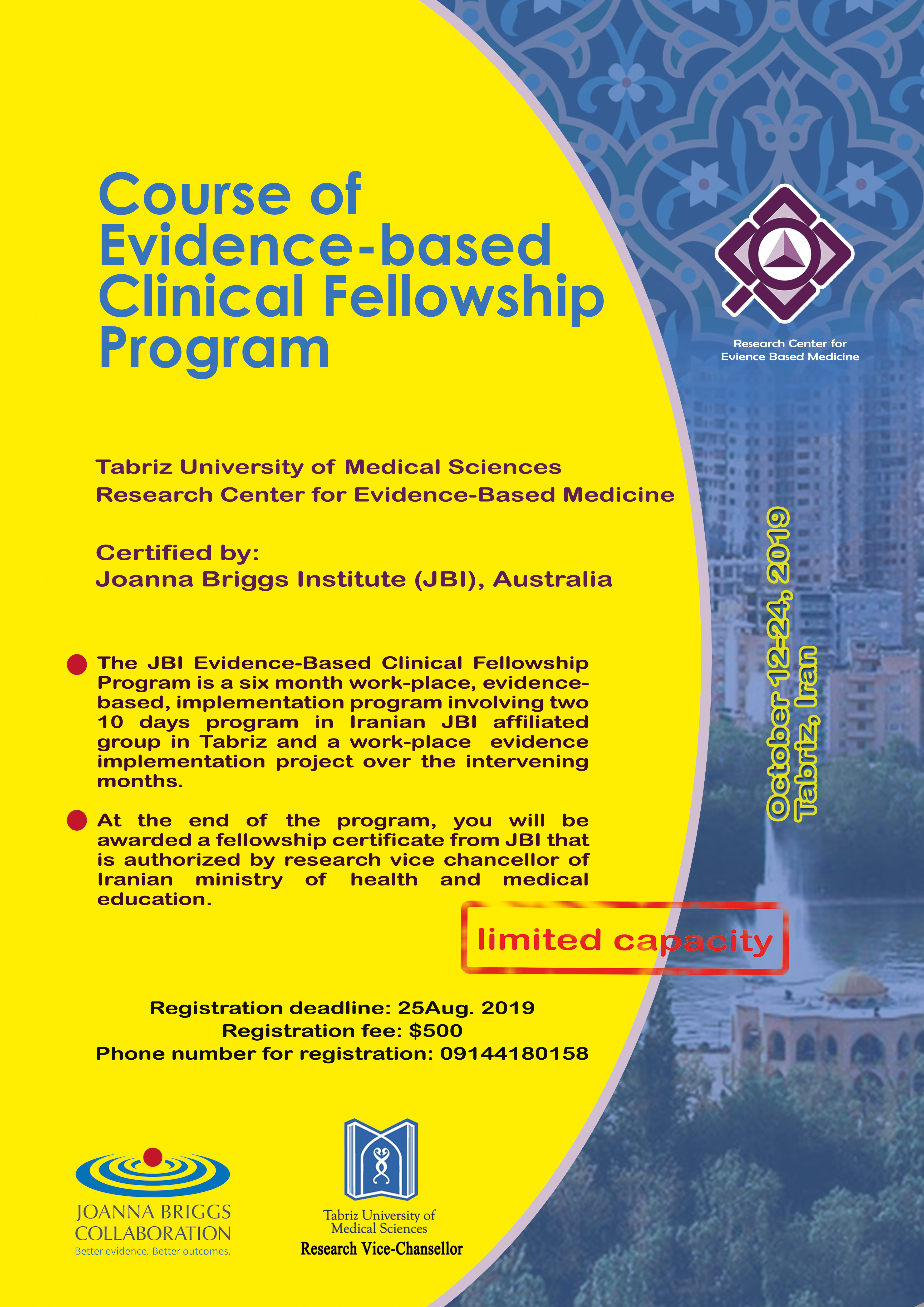 برگزار کننده: مرکز تحقیقات پزشکی مبتنی بر شواهد با همکاری مشترک موسسه (JBI) Joanna Briggs Institute استرالیا