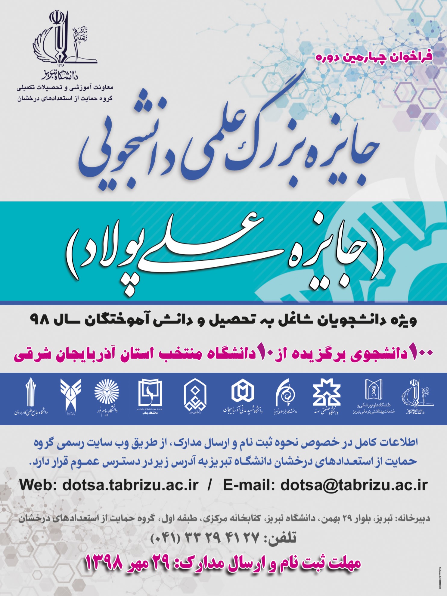 فراخوان چهارمین دوره جایزه بزرگ علمی دانشجویی (جایزه علی پولاد - ۱۳۹۸)