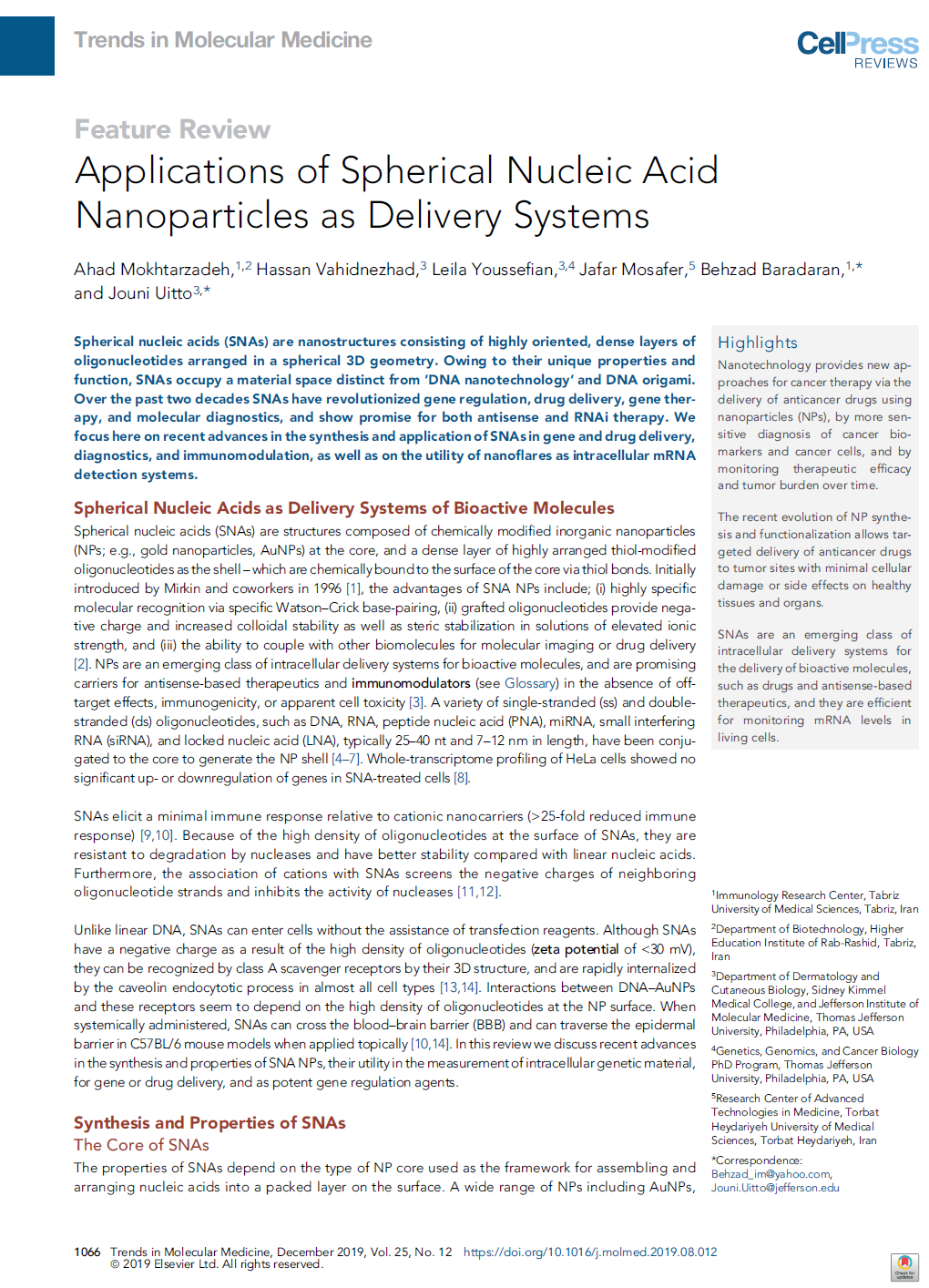 (Trends in molecular medicine(Impact Factor: 11.028 ، به عنوان طرح برتر روی جلد انتخاب گردید.