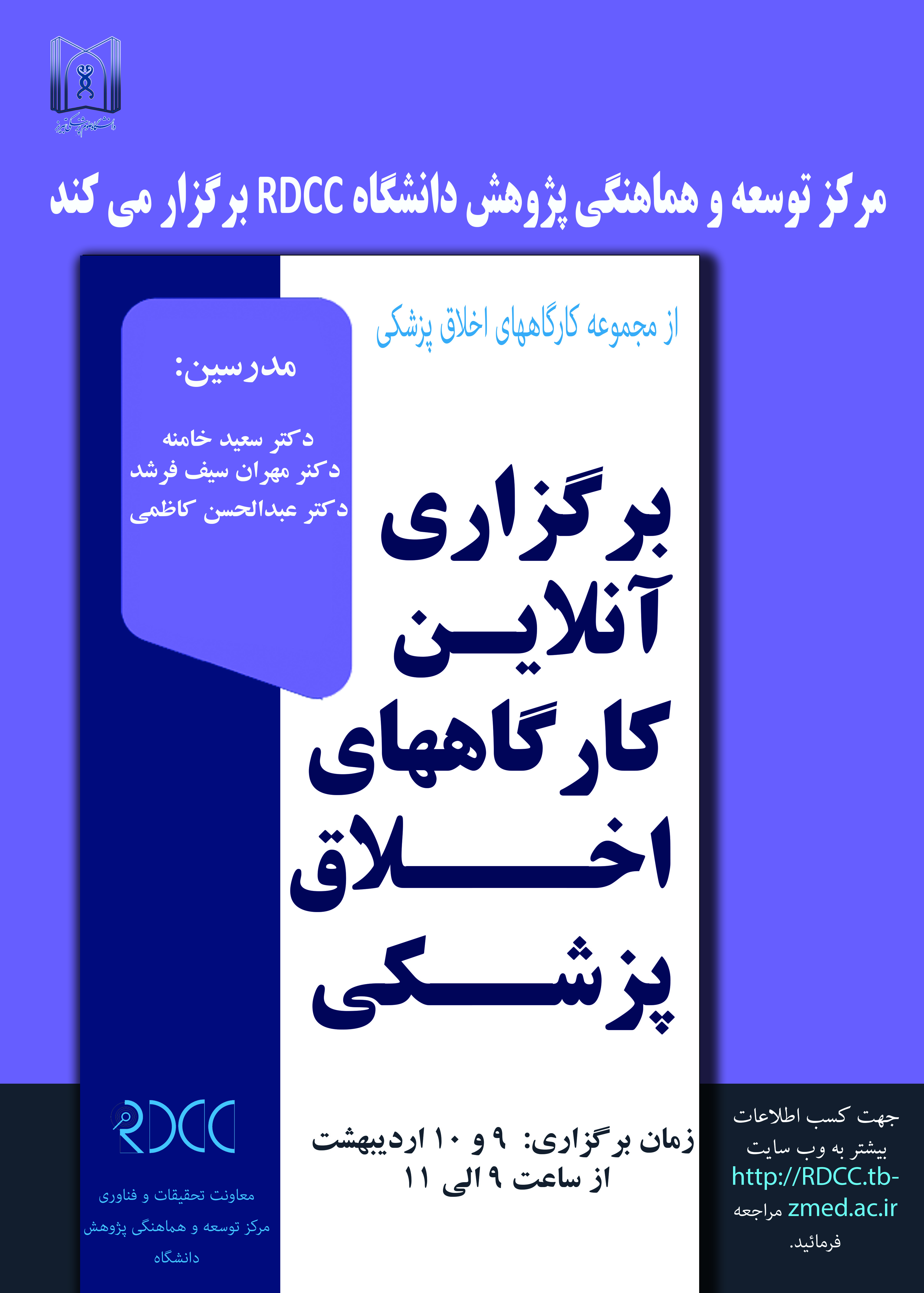 برگزاری آنلاین کارگاه اخلاق پزشکی نیمسال اول سال 99
