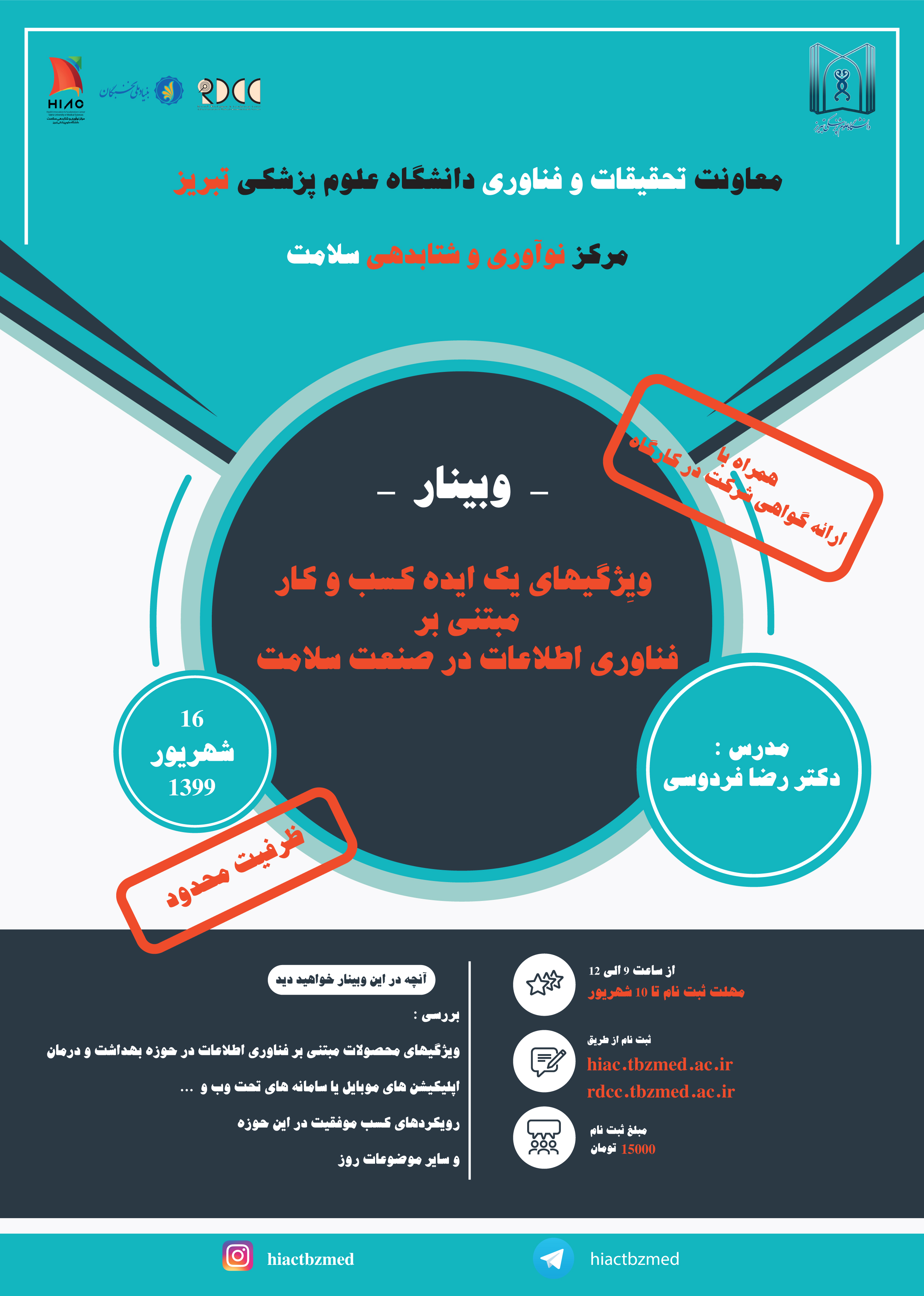 کارگاه آنلاین " ویژگیهای یک ایده کسب و کار مبتنی بر فناوری اطلاعات در صنعت سلامت "