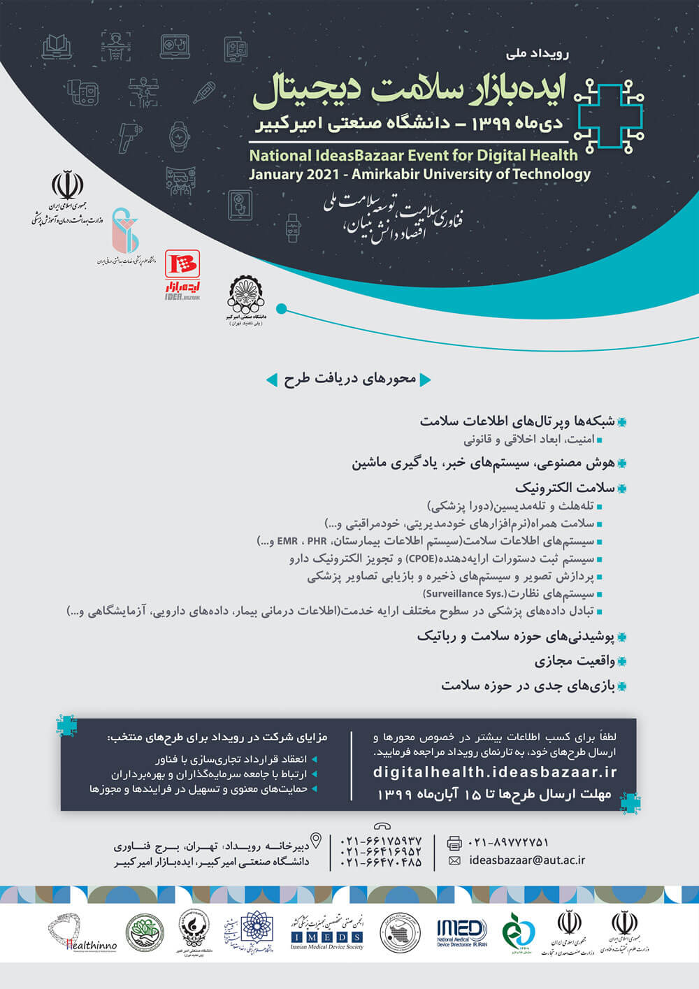 دفتر توسعه فناوری سلامت وزارت بهداشت، درمان و آموزش پزشکی با همکاری مرکز تبادل فناوری ایدهبازار دانشگاه صنعتی امیرکبیر برگزار می نماید.
