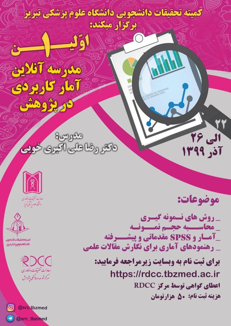 کارگاه «اولین مدرسه آنلاین آمار کاربردی در پژوهش» آذرماه 99