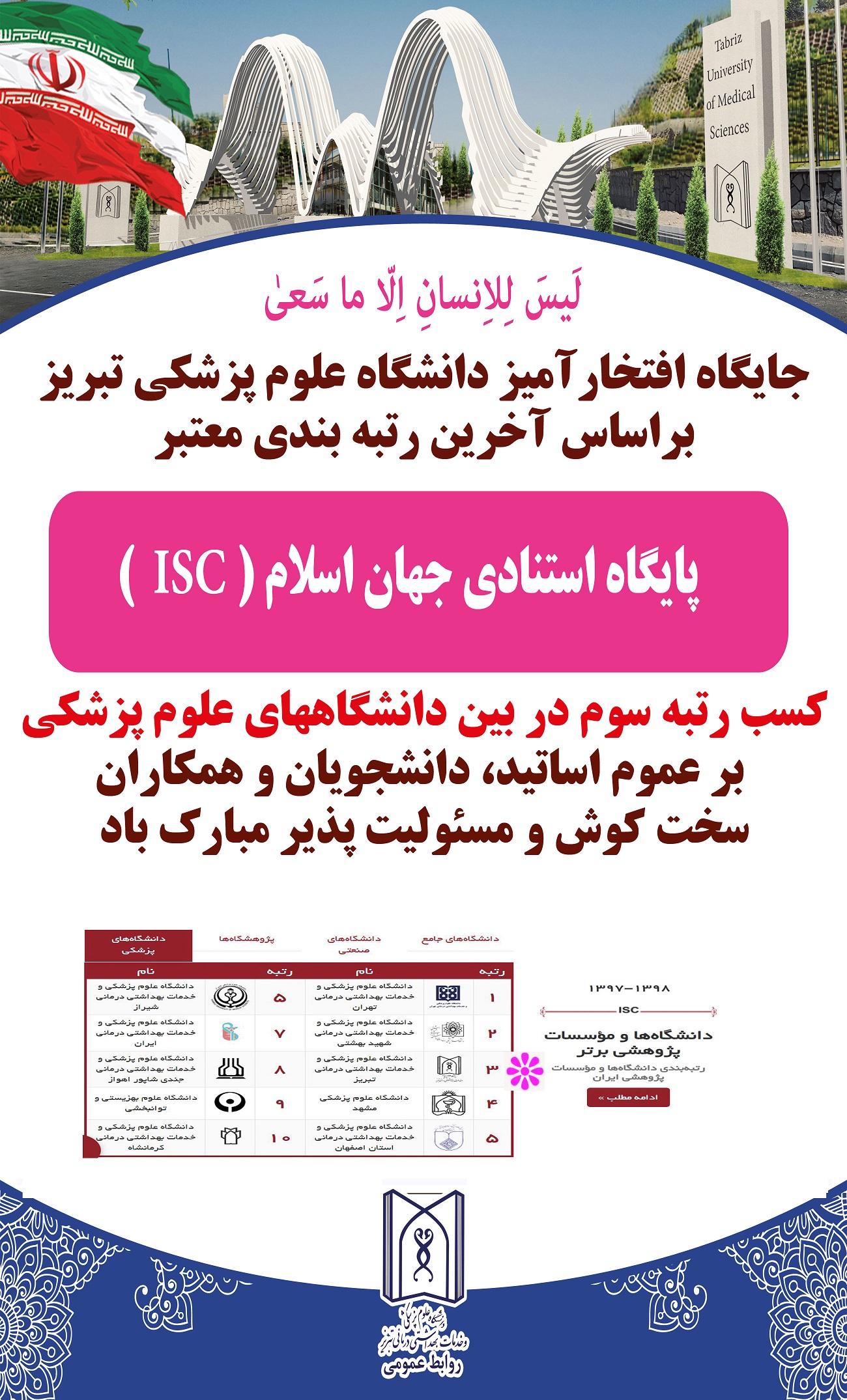 جایگاه افتخارآمیز دانشگاه علوم پزشکی تبریز براساس آخرین رتبه بندی معتبر پایگاه استنادی جهان اسلام (ISC)