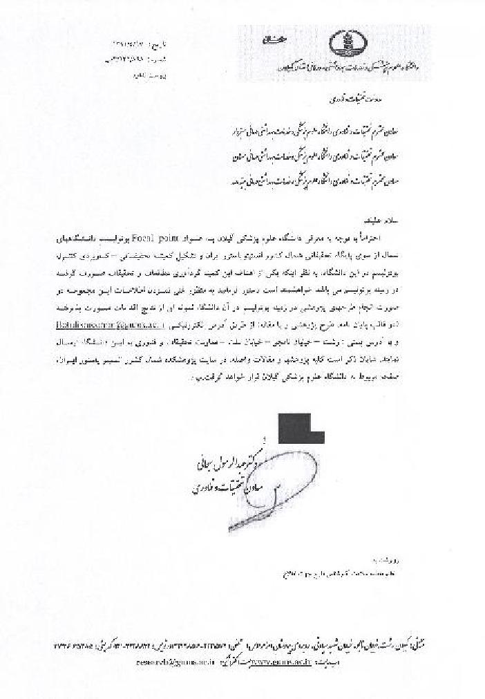 معرفی دانشگاه علوم پزشکی گیلان بعنوان Focal point