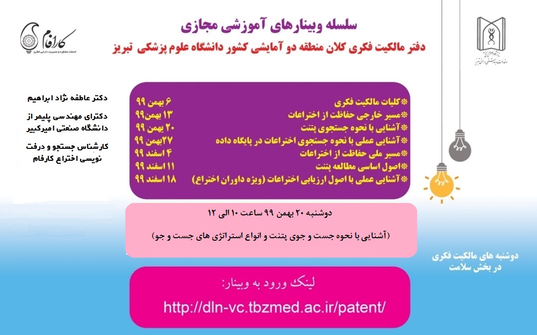 سلسله وبینارهای آموزش مجازی دفتر مالکیت فکری کلان منطقه دو آمایشی کشور دانشگاه علوم پزشکی تبریز
