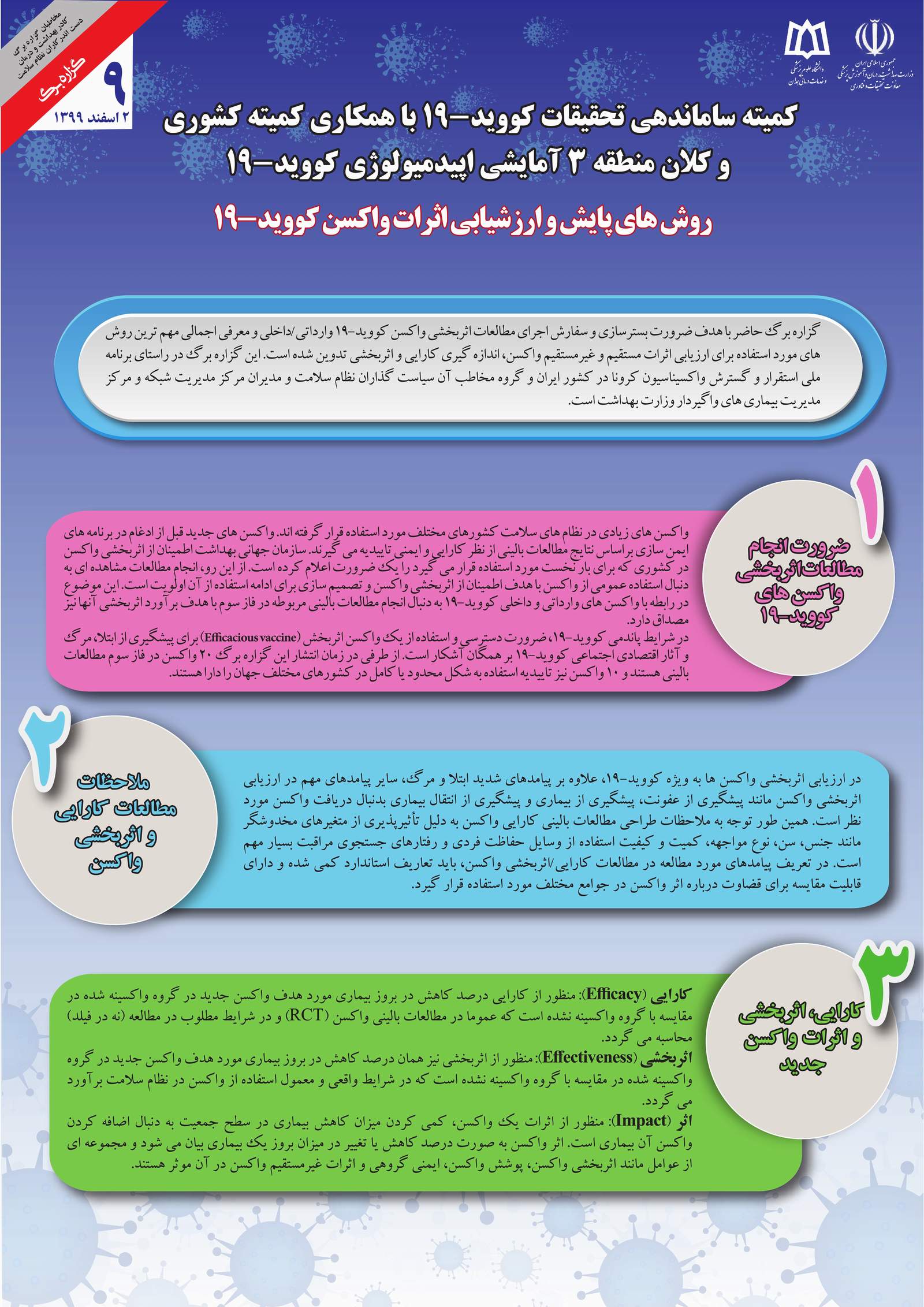 گزاره برگ های تحقیقات کووید-19 توسط کمیته ساماندهی تحقیقات کووید-19 زیر نظر معاونت تحقیقات و فناوری وزارت بهداشت، درمان و آموزش پزشکی منتشر گردید.