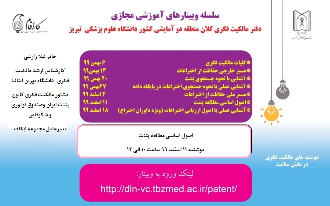 سلسله وبینارهای آموزش مجازی دفتر مالکیت فکری کلان منطقه دو آمایشی کشور دانشگاه علوم پزشکی تبریز