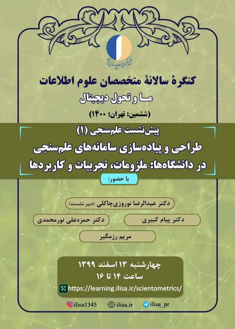 علاقهمندان میتوانند از طریق لینک (https://learning.ilisa.ir/scientometrics)، در بستر ادوبی کانکت، در نشست حضور یابند.