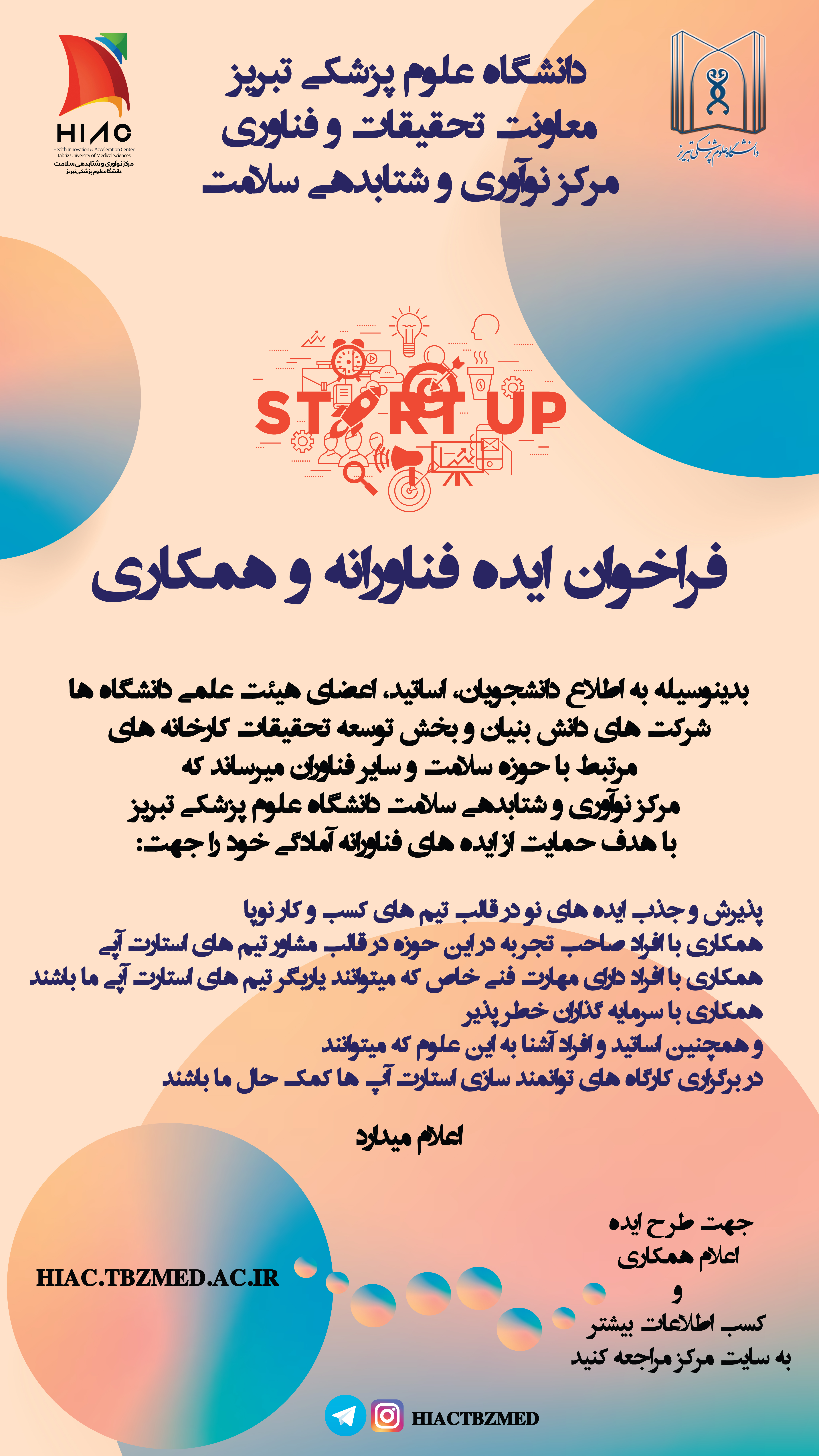 فراخوان ایده فناورانه و همکاری مرکز نوآوری و شتابدهی سلامت دانشگاه علوم پزشکی تبریز