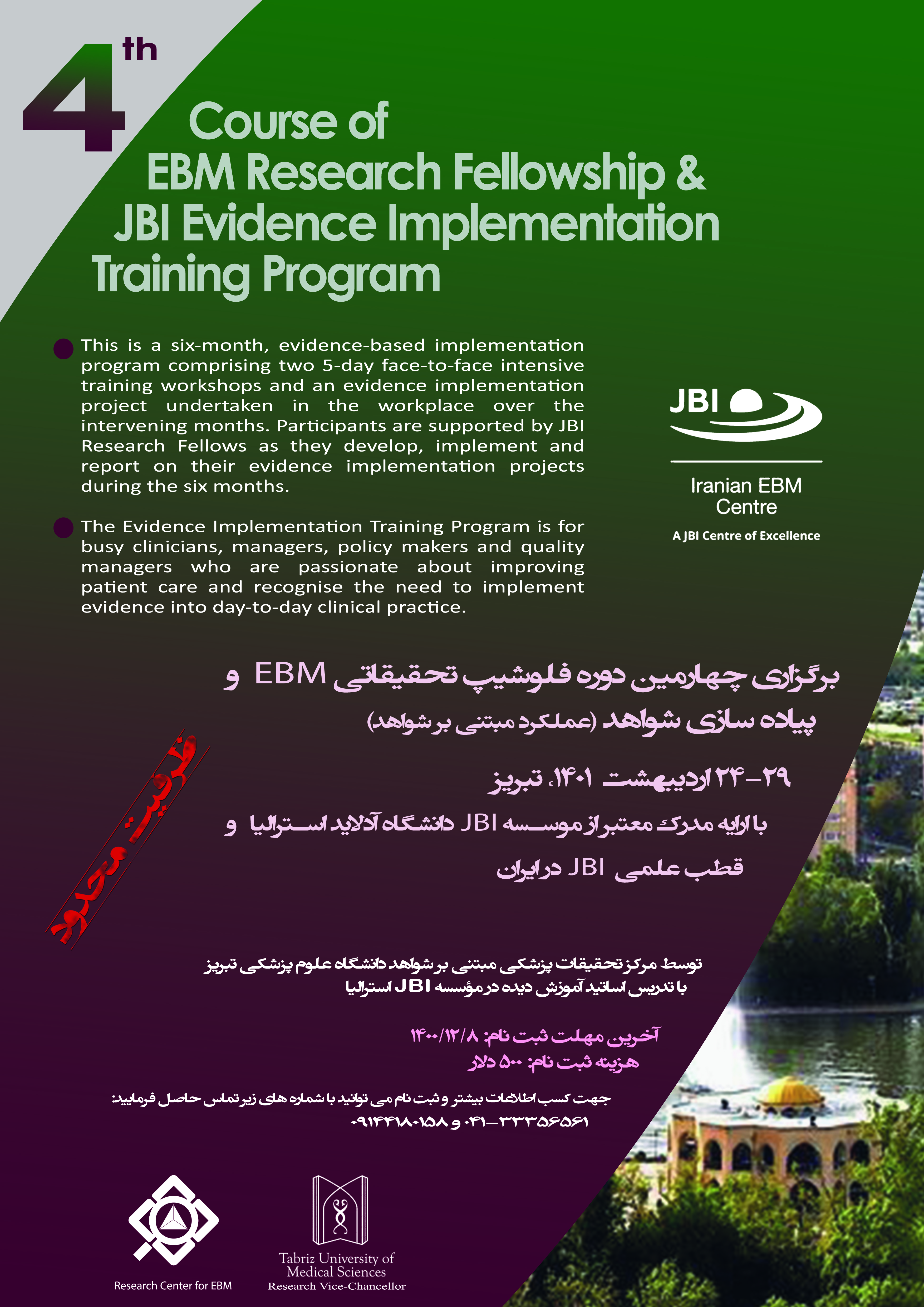 برگزار کننده: مرکز تحقیقات پزشکی مبتنی بر شواهد با همکاری موسسه (JBI) Joanna Briggs Institute استرالیا