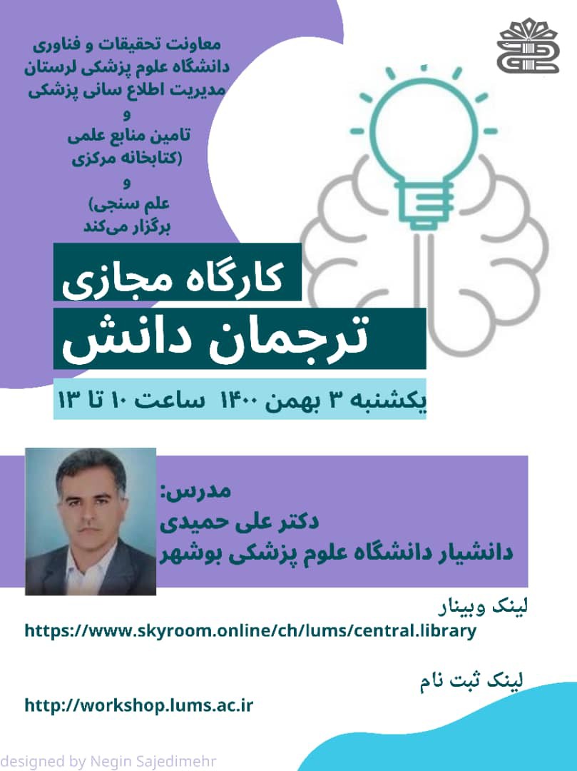 معاونت تحقیقات و فناوری دانشگاه علوم پزشکی لرستان، مدیریت اطلاع رسانی پزشکی و تامین منابع علمی(واحد علم سنجی و کتابخانهمرکزی) برگزار مینماید:
