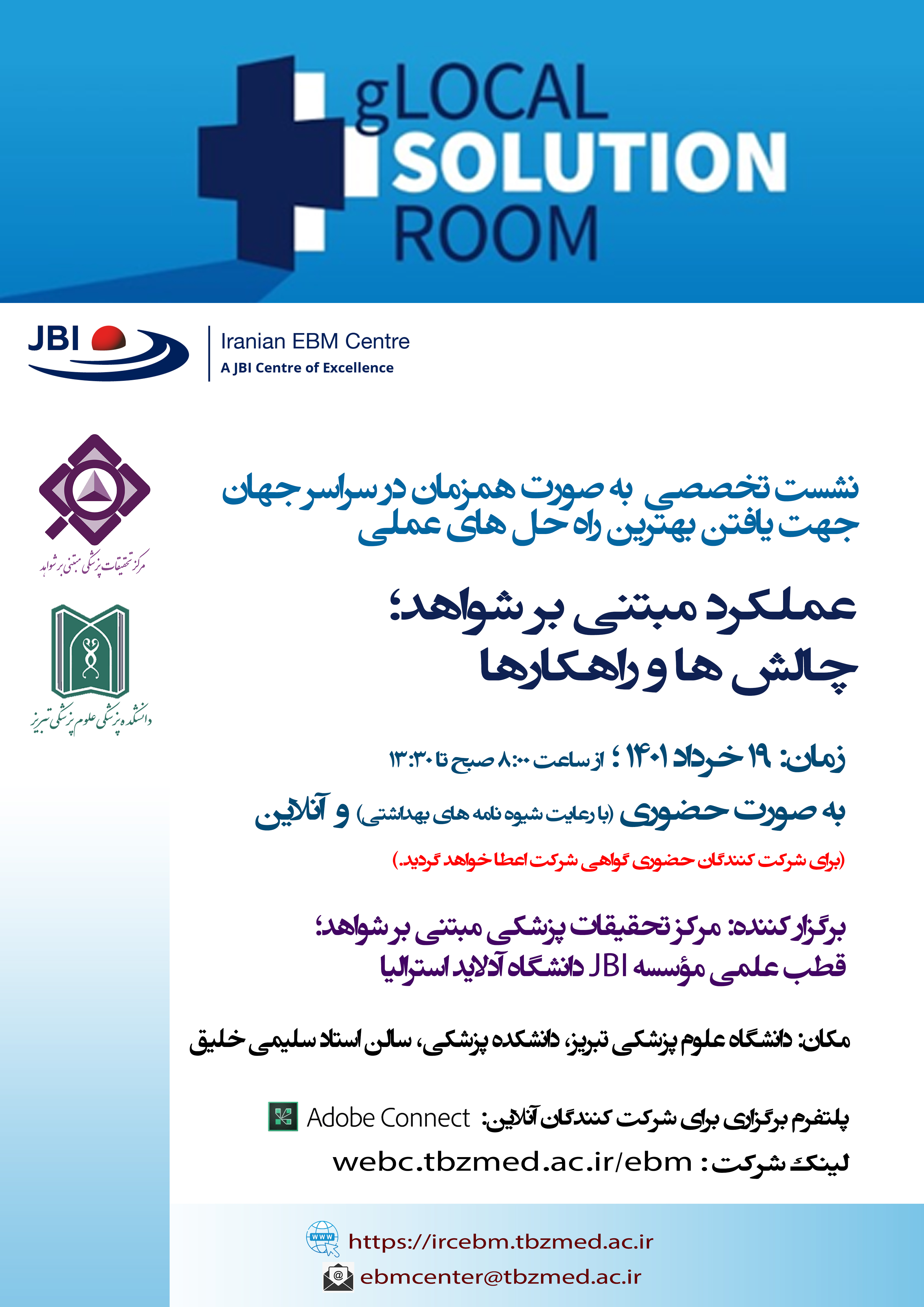 مرکز تحقیقات پزشکی مبتنی بر شواهد همکار و قطب علمی مؤسسه JBI (Joanna Briggs Institute) استرالیا برگزار می کند: