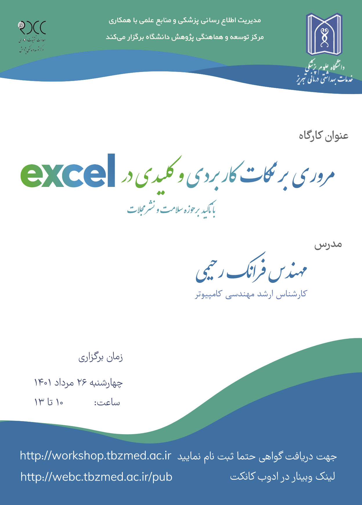لازم به توضیح است که ثبت نام از طریق وبسایت https://workshop.tbzmed.ac.ir امکان پذیر میباشد.