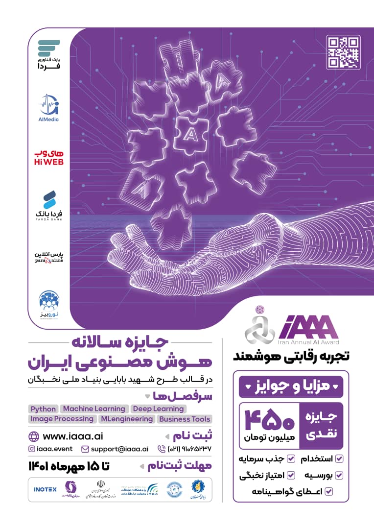 مسابقه سالانه هوش مصنوعی ایران، iAAA، با هدف آشنایی و آموزش علاقهمندان به این فناوری و پرورش این افراد در کل کشور، در نظر دارد طی یک فرایند مشخص حضوری و غیر حضوری، آموزش های لازم به علاقه مندان ارائه دهد و در نهایت با طرح موضوعات جدی صنعت در حوزه هوش مصنوعی، علاوه بر پیشبرد اهداف مسابقه 3 مسئله واقعی را رفع نماید. در سال جاری این مسائل در حوزه سلامت و پزشکی خواهد بود و تیم ها در پایان مسابقه، فارغ از جوایز دریافتی، میتوانند از ظرفیت های جانبی فراهم شده نیز استفاده نمایند.