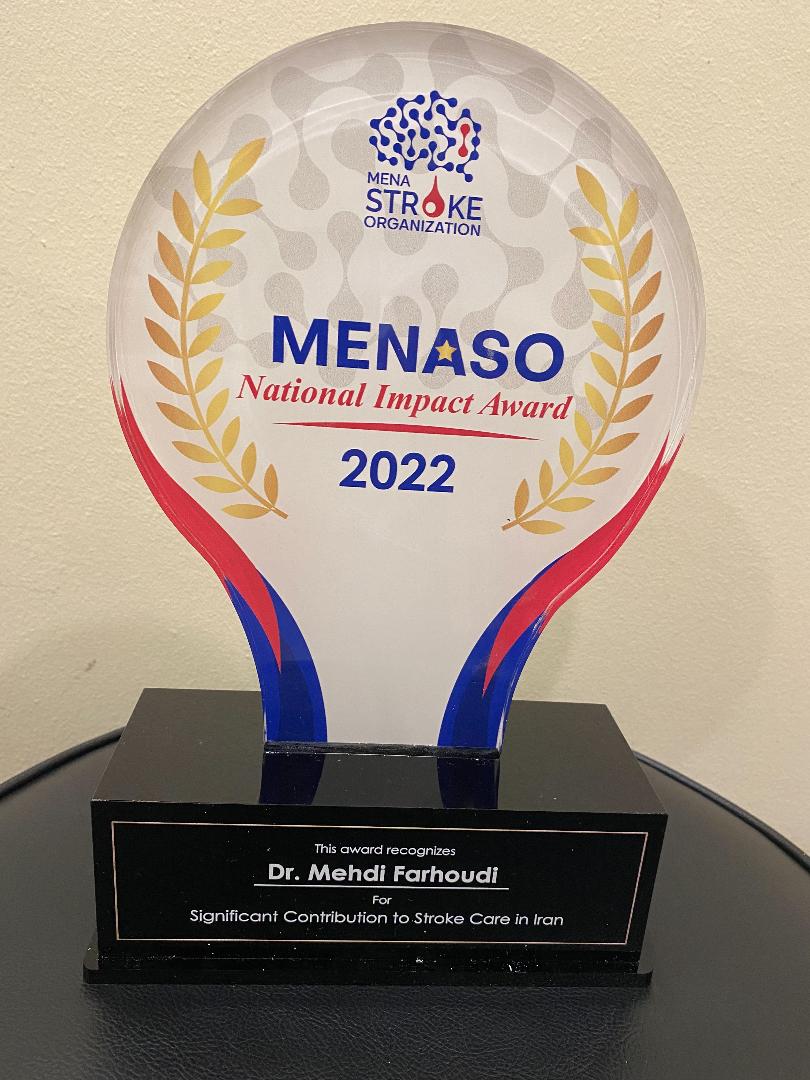 جایزه ای به نمایندگی از دانشگاه علوم پزشکی تبریز وانجمن سکته مغزی کوثر وتمام فعالان عرصه سکته مغزی به این جانب اعطا شد تحت عنوان national impact awardکه بیانگر تاثیرگذاری قابل توجه در کشور در حوزه سکته مغزی است.