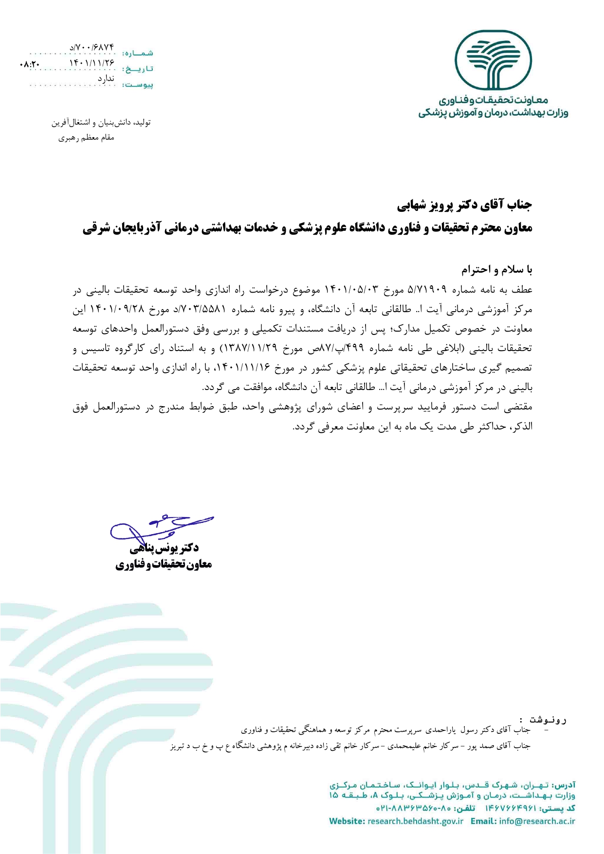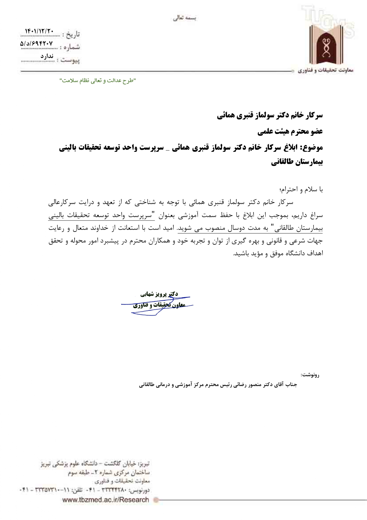 اخذ مجوز واحد توسعه تحقیقات بالینی مرکز آموزشی،درمانی آیت ... طالقانی تبریز