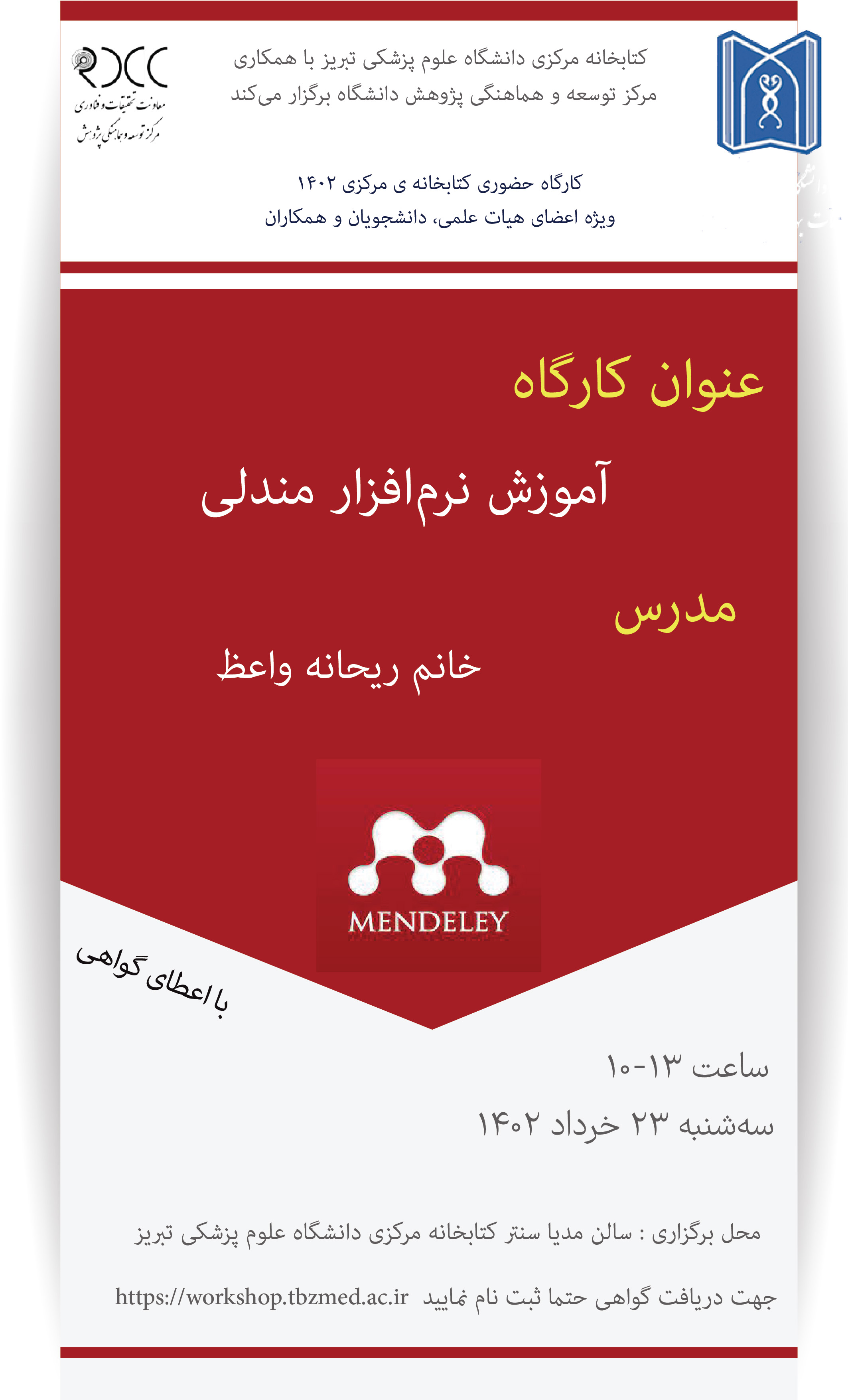 برای کسب اطلاعات بیشتر و ثبت نام به آدرس https://workshop.tbzmed.ac.ir مراجعه نمایید.