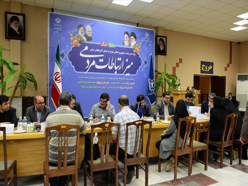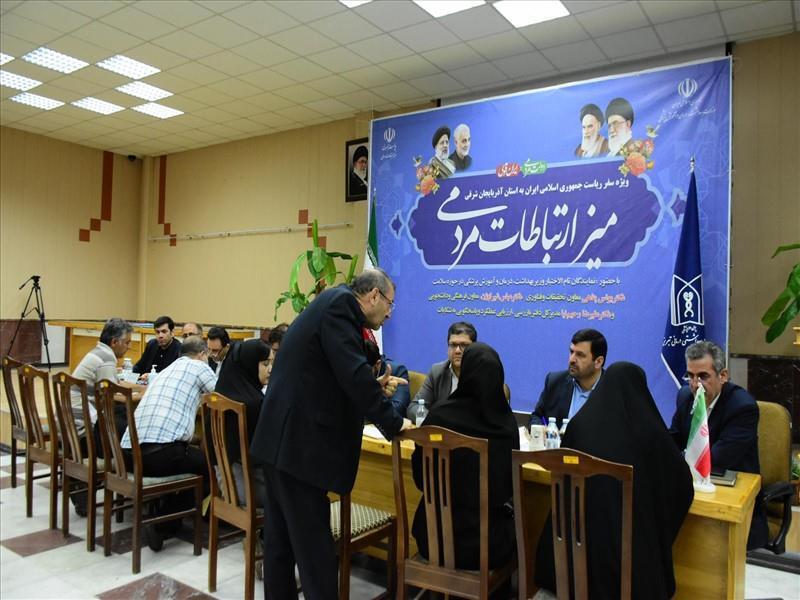 همزمان با سفر رئیس جمهور، میز ارتباطات مردمی وزارت بهداشت، درمان و آموزش پزشکی با حضور مدیران ارشد وزارت بهداشت، درمان و آموزش پزشکی در تبریز برپا شد.