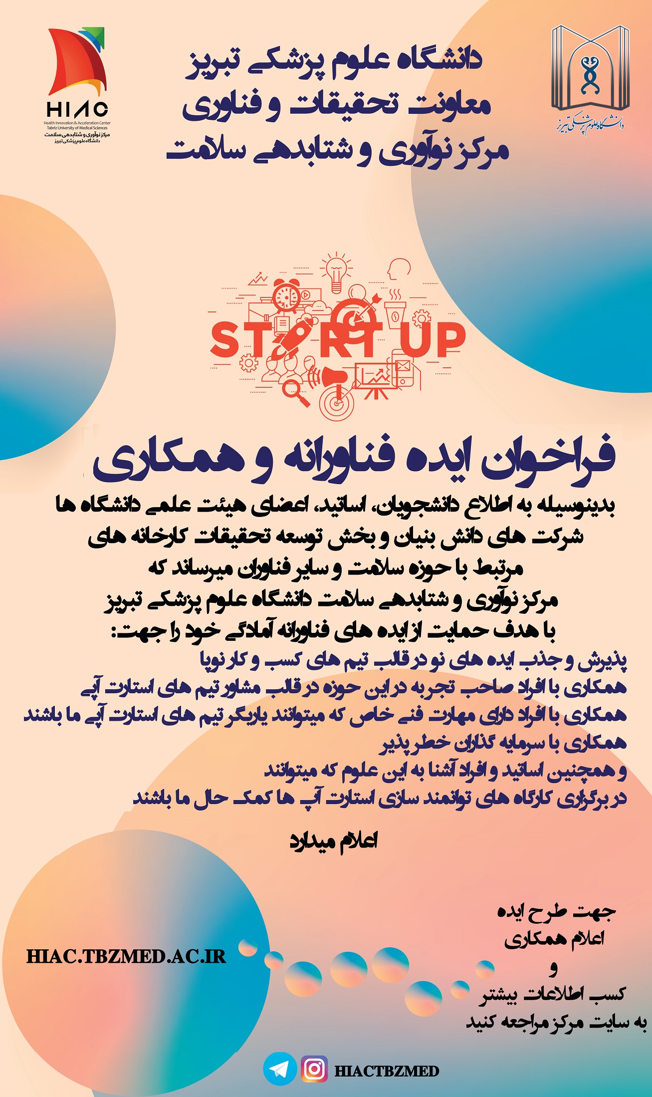 به گزارش روابط عمومی معاونت تحقیقات و فناوری، با توجه به توسعه فعالیت های مرکز نوآوری و شتابدهی سلامت ، این مرکز از کلیه علاقمندان تقاضا دارد ایده های فناورانه خود را پس از تکمیل فرم پرسشنامه ایده که در سایت مرکز ( hiac.tbzmed.ac.ir ) بارگذاری شده جهت بررسی در اسرع وقت به آدرس ایمیل مرکز ( hiac@tbzmed.ac.ir ) ارسال نمایند.