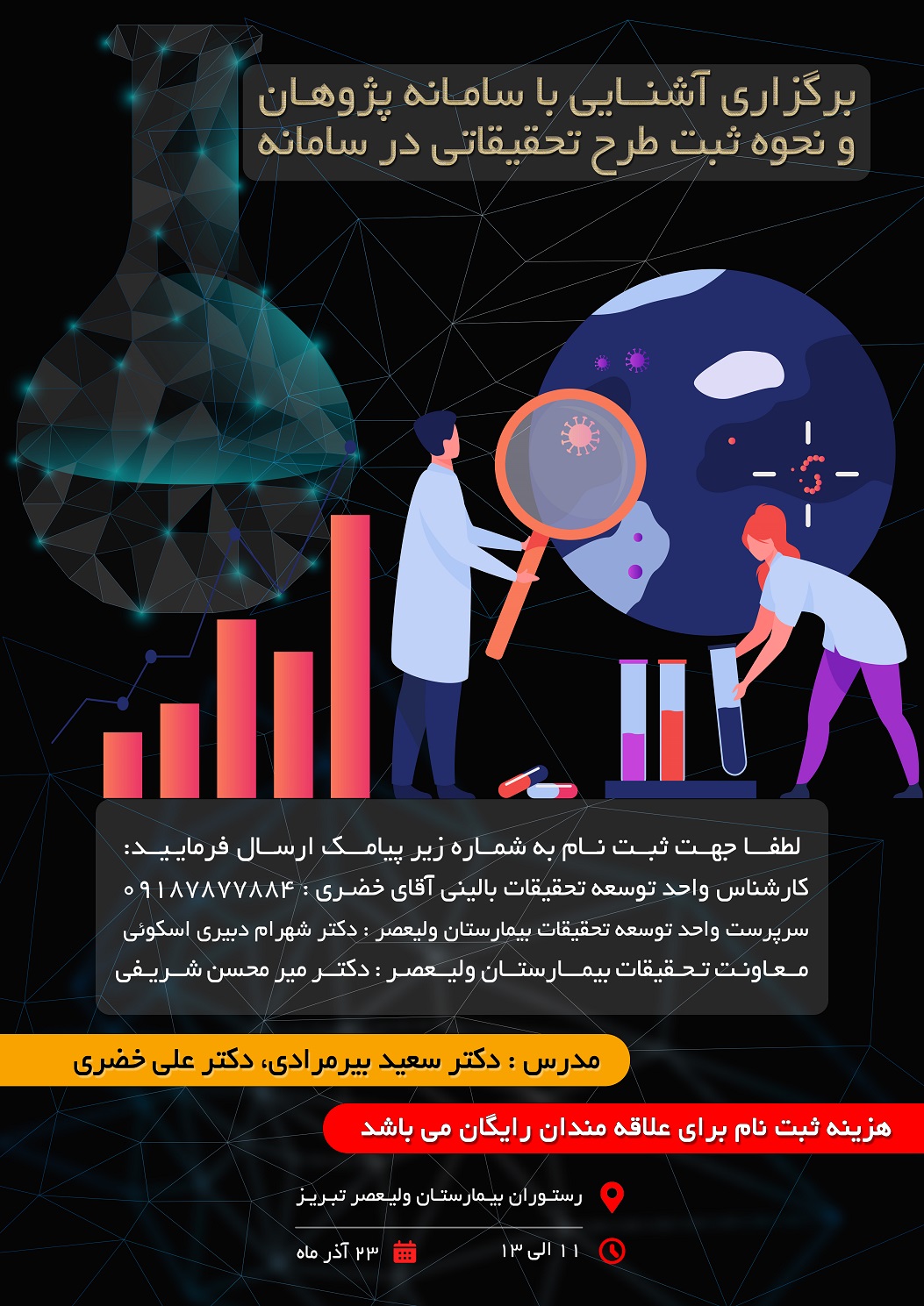 واحد توسعه تحقیقات بالینی بیمارستان ولیعصر تبریز برگزار می کند: