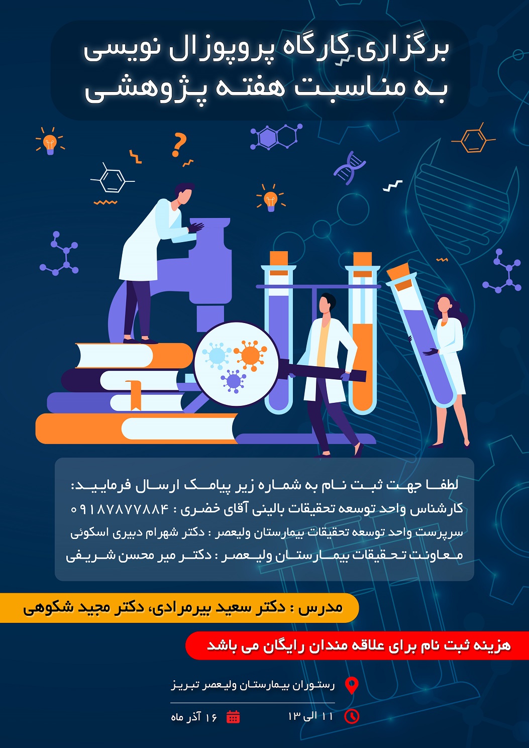 واحد توسعه تحقیقات بالینی بیمارستان ولیعصر تبریز از برگزاری دو کارگاه به مناسبت هفته پژوهش در تاریخهای 16 و 23 آذرماه 1402 خبر داد