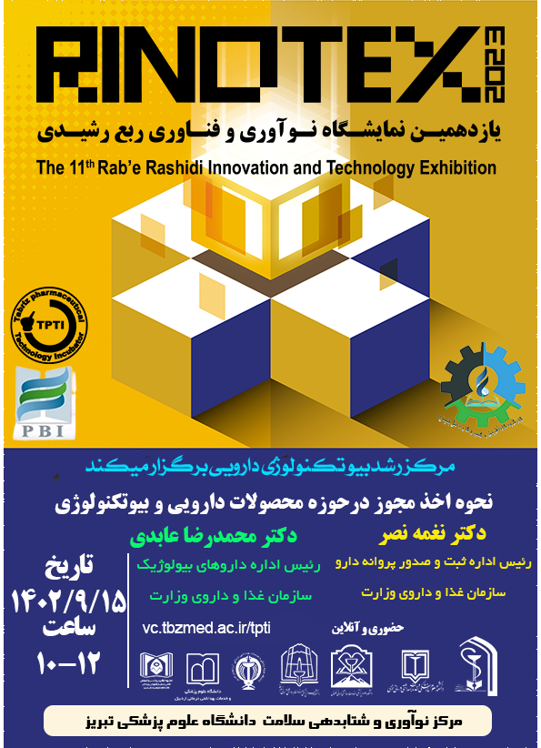 وبینار حضوری و مجازی " نحوه ی اخذ مجوزهای محصول فرآورده های دارویی و بیوتکنولوژی " روز چهارشنبه پانزدهم آذرماه 1402 در مرکز نوآوری و شتابدهی سلامت دانشگاه برگزار می شود