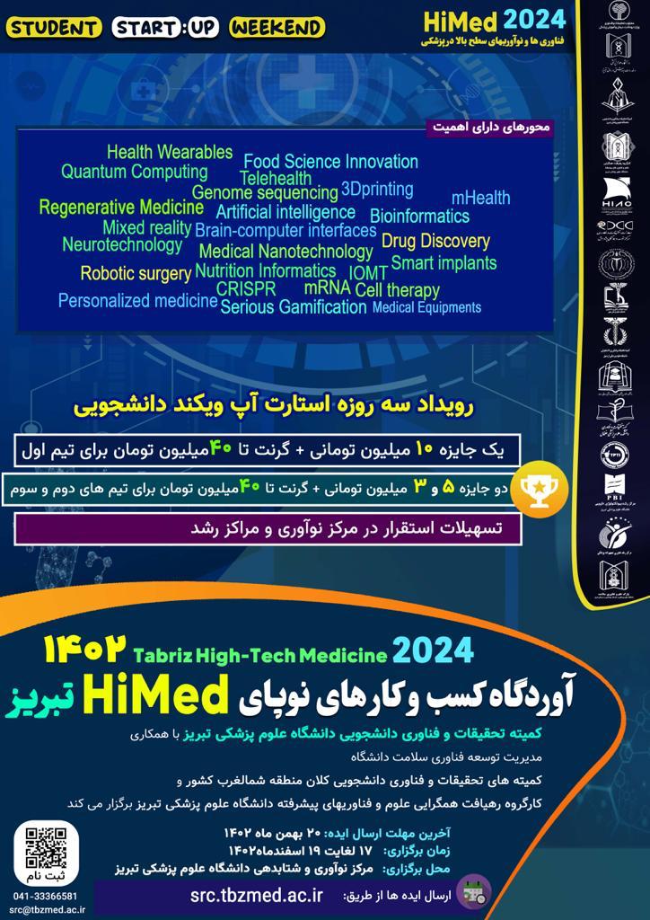 کمیته تحقیقات و فناوری دانشجویی دانشگاه علوم پزشکی تبریز با همکاری مدیریت توسعه فناوری سلامت دانشگاه و ️کمیته های تحقیقات و فناوری دانشجویی کلان منطقه شمالغرب، برگزار میکند: