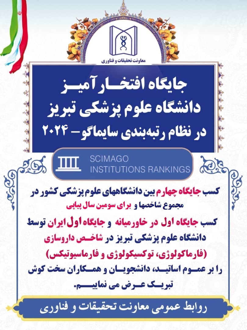 ارتقا رتبه جهانی دانشگاه علوم پزشکی تبریز و کسب جایگاه اول در خاورمیانه و ایران در شاخص داروسازی (فارماکولوژی، توکسیکولوژی و فارماسیوتیکس)